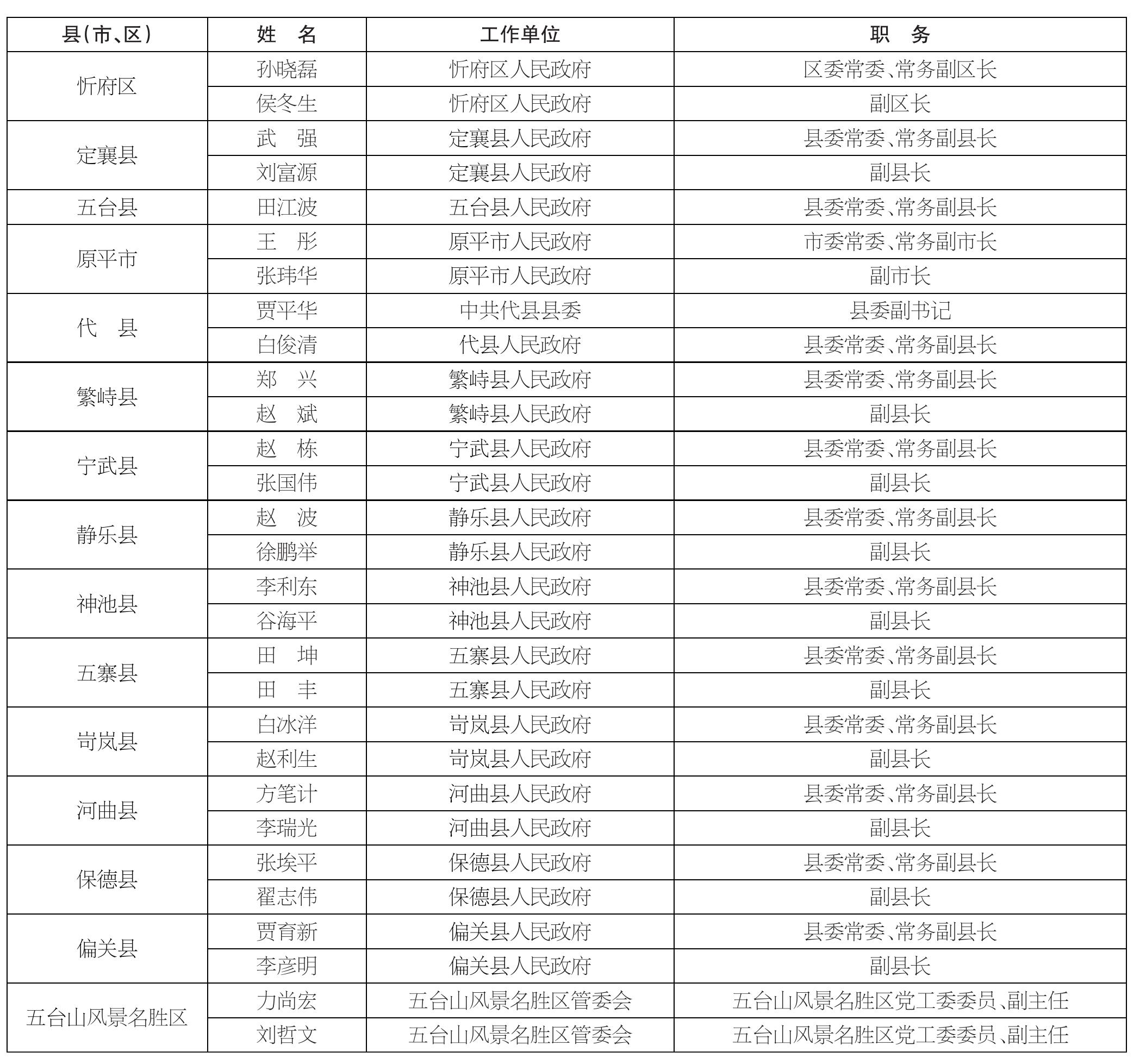 忻州市2025年重点小(一)型水库防汛行政责任人名单