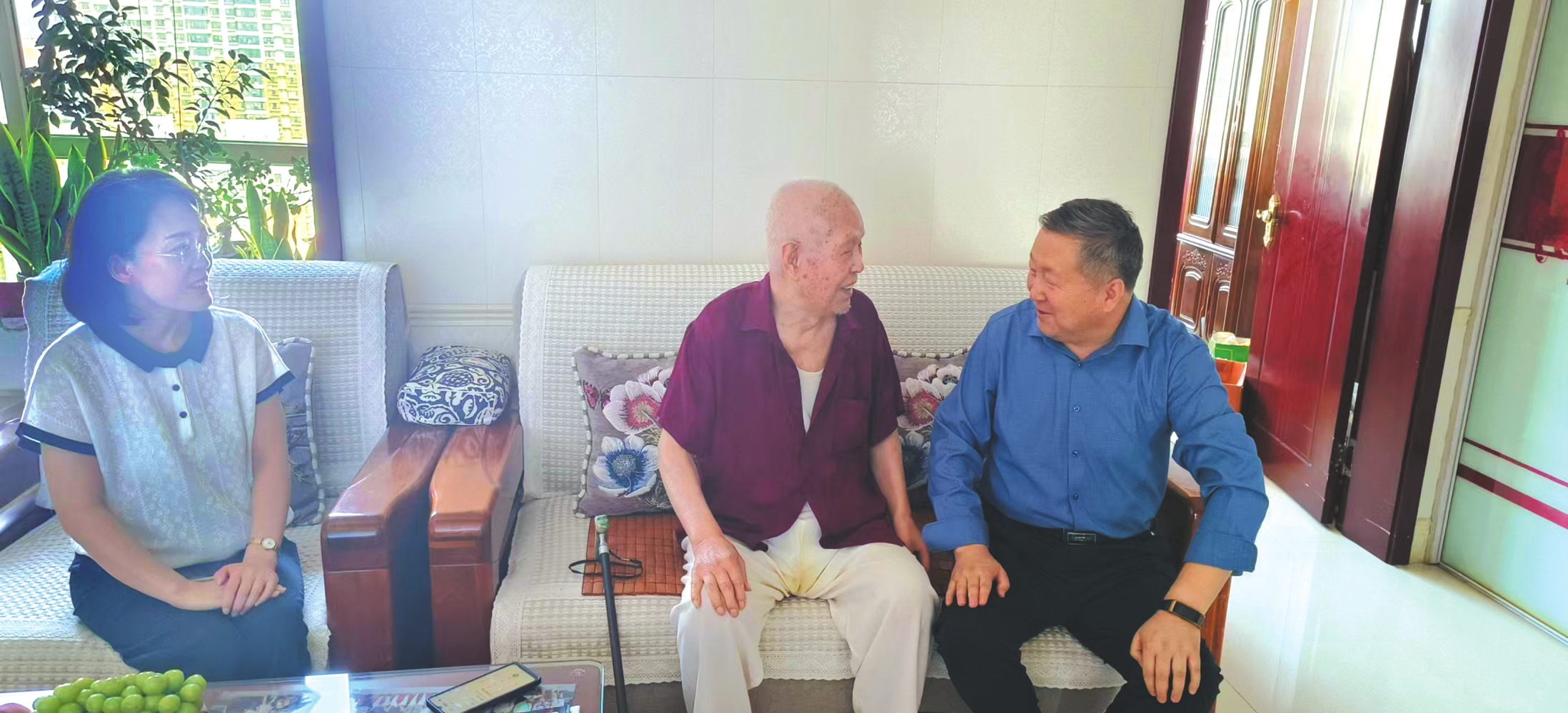 9月1日,静乐县委老干部局领导班子专程前往忻府区,上门看望在抗战时期参加革命工作的离休干部杨书田同志。慰问中,大家与杨书田老人促膝长谈,仔细询问他的饮食起居、身体健康状况,耐心倾听老人讲述当年投身抗战、保家卫国的峥嵘岁月。大家向老人致以崇高敬意,感谢他为国家和人民作出的贡献,为他颁发了“中国人民抗日战争胜利80周年”纪念章并送上慰问金。此次慰问不仅传递了静乐县委对老同志的敬意,更传承了红色记忆,弘扬了伟大抗战精神。本报通讯员摄