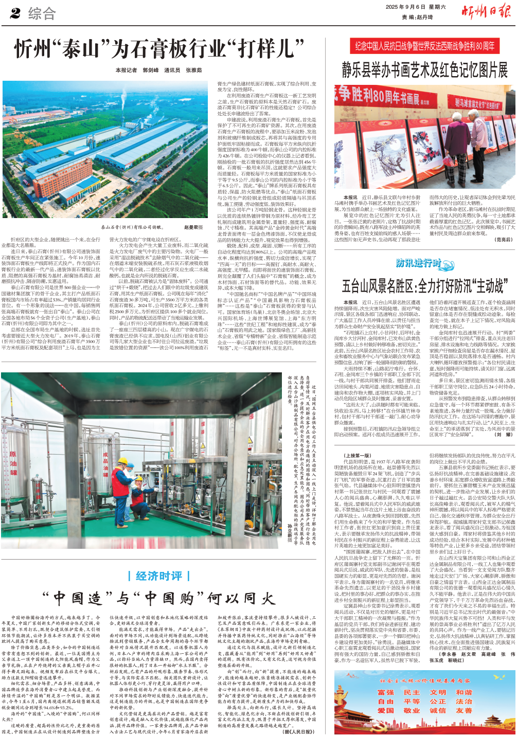 忻州“泰山”为石膏板行业“打样儿”