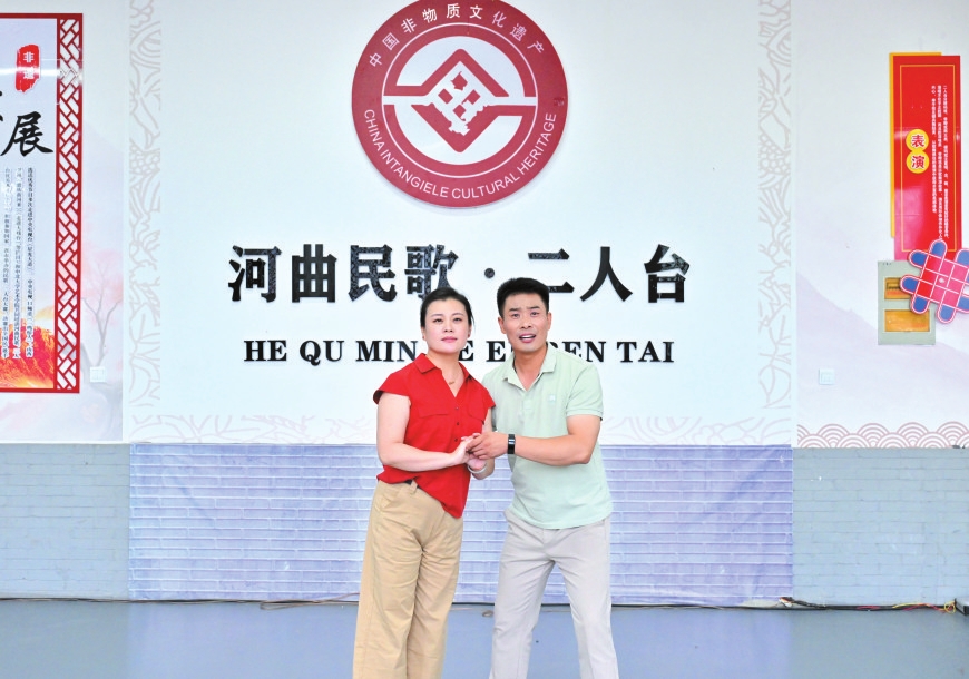 走进河曲县白朴公园,一段清亮婉转的唱腔便随风入耳——河曲县民歌二人台艺术团演员邬光正和同事们全情投入,打磨大型非遗音乐剧《大河长歌》。他额角渗着细密的汗珠,当唱到“好儿女今日唱长歌,胜过了前辈了不得”时,突然停了下来,对搭档说:“再来一遍,刚才那口气没顶满。”这份对细节的较真,藏着他对二人台艺术最朴素也最深厚的敬畏。