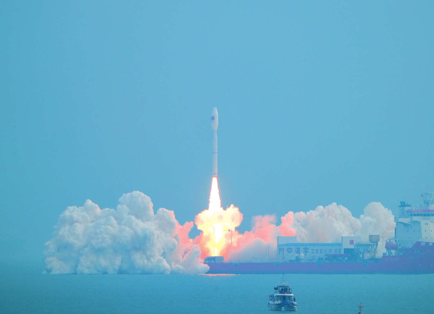 9月24日15时56分,我国太原卫星发射中心在山东日照附近海域使用捷龙三号运载火箭,成功将吉利星座06组卫星发射升空,卫星顺利进入预定轨道,发射任务获得圆满成功。新华社发(安迪摄)