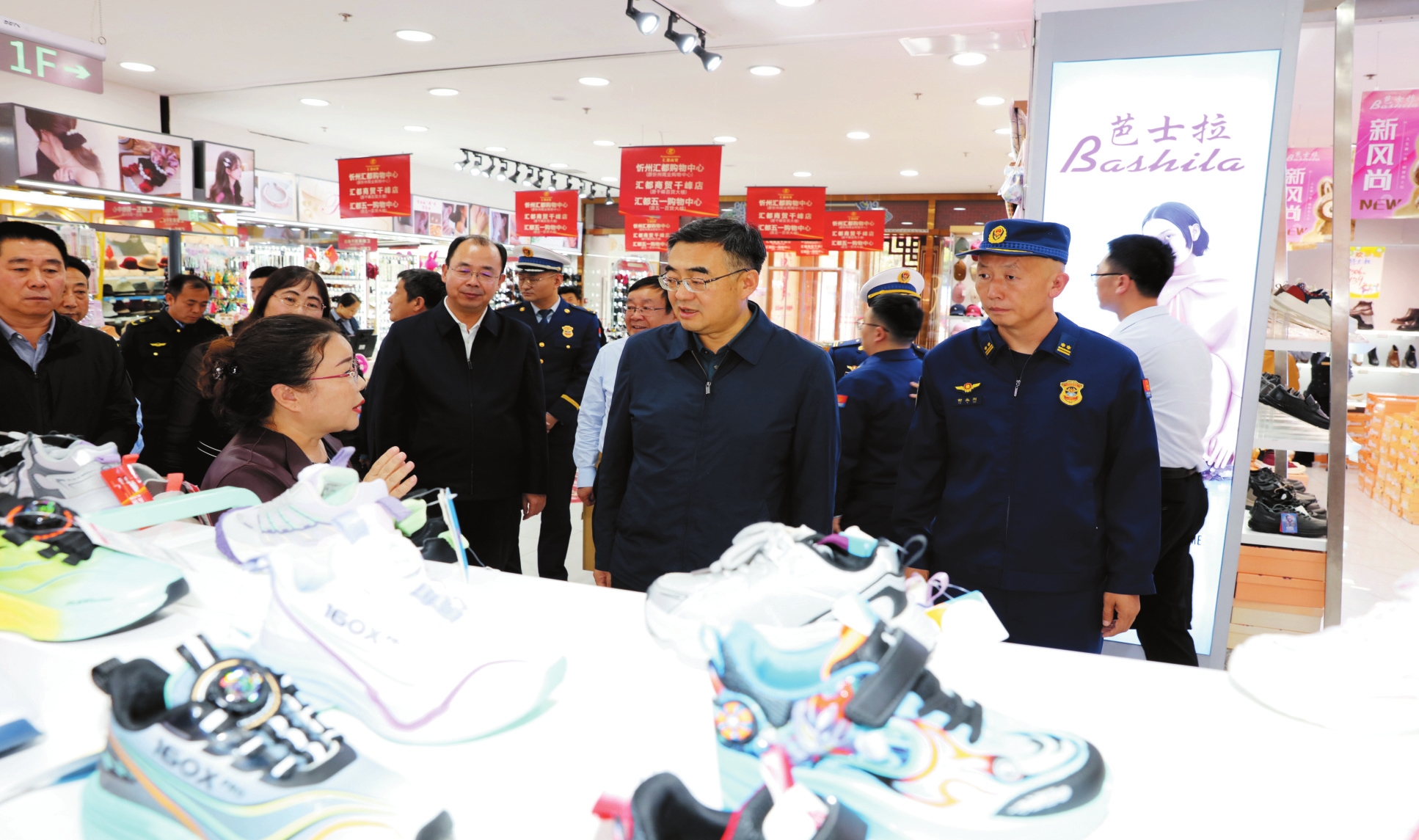 市长李建国在忻州城区汇都购物中心调研检查消防安全、食品安全、特种设备运行和商贸消费等情况。本报记者范涛摄
