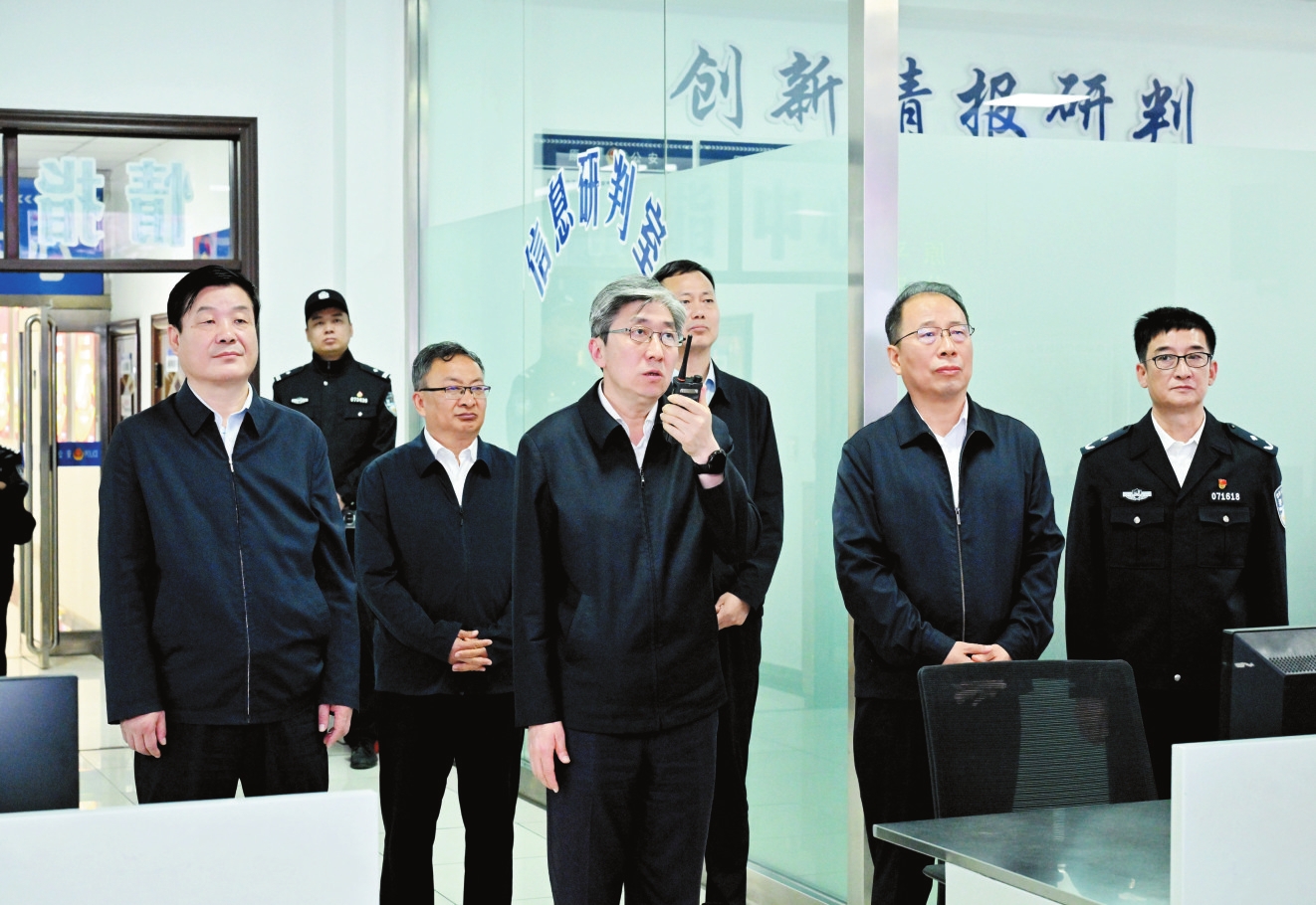 市委书记朱晓东在原平市公安局指挥中心调研检查社会面治安管控及节日期间值班值守安排等工作情况。本报记者冯晓磊摄