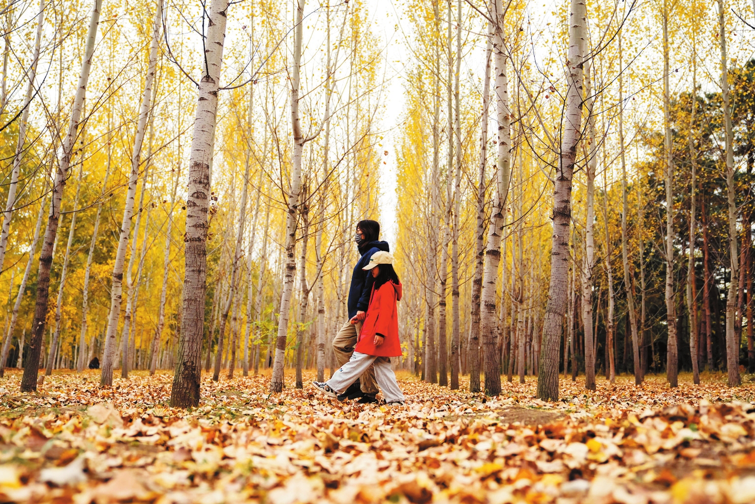 金秋时节,吉林省长春市秋意浓郁,景色如画。图为10月12日,游人在长春植物园内观赏秋景。 新华社记者 许畅摄