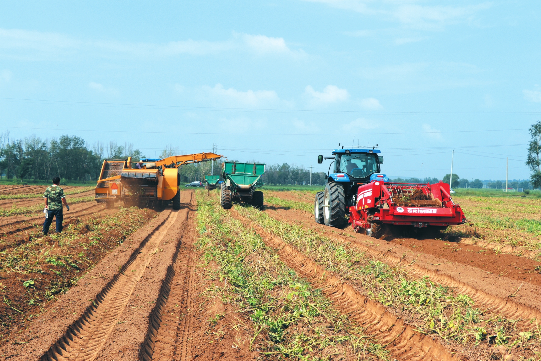 五寨县现代化加工型马铃薯种植基地马铃薯机械化收获现场。刘笃效摄
