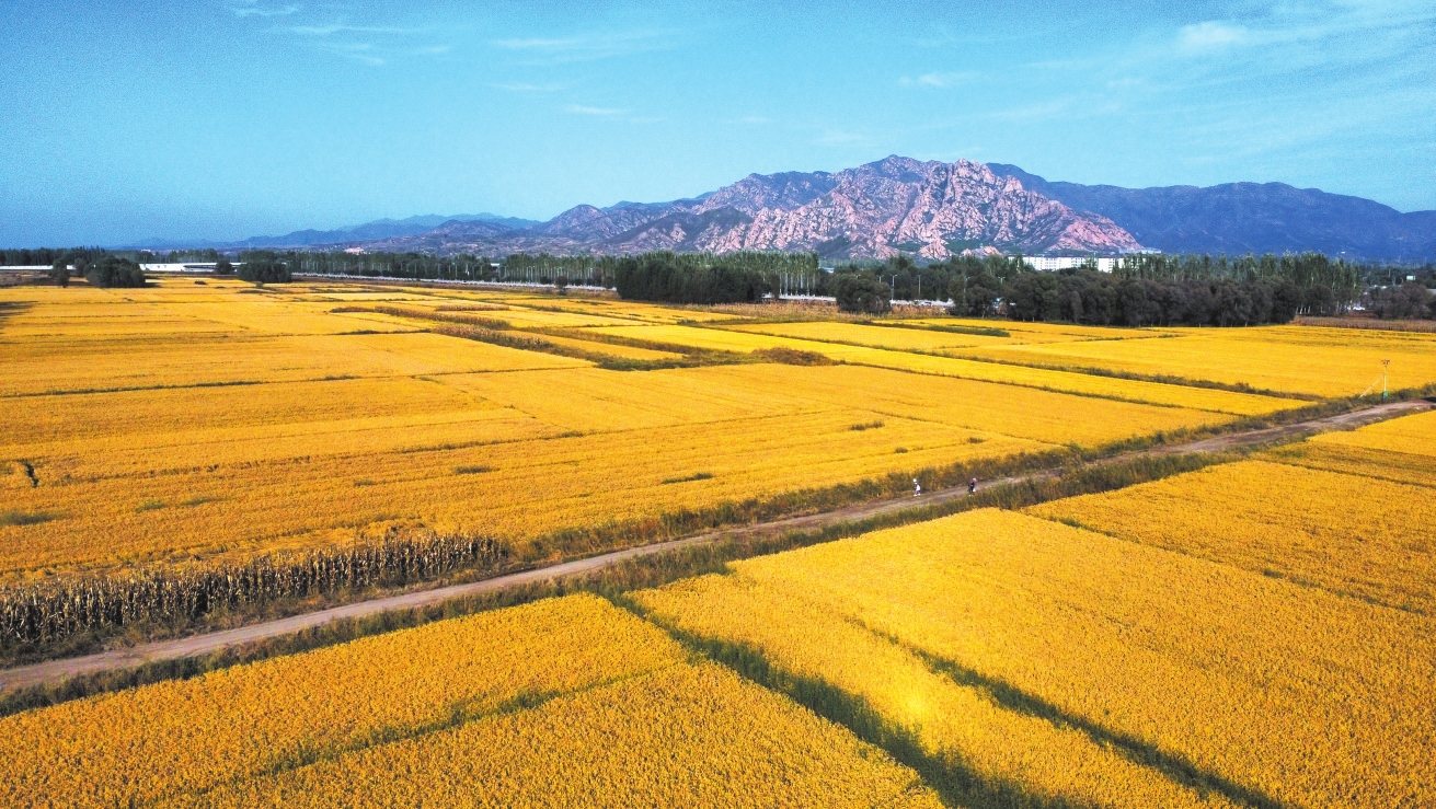 金秋的原平市大库狄村,万亩稻田铺展成一片金色海洋。褚 震摄