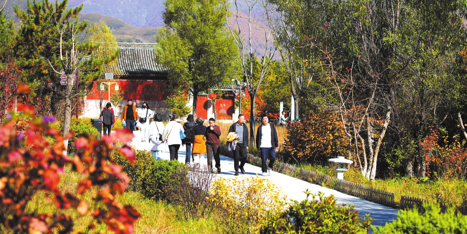 为持续提升游客体验,五台山景区聚焦游客关切的问题,一方面加强对文物古建的保护,另一方面通过深化环境治理、优化基础设施来全面提升公共服务水平。依托“三季有花,四季有绿”的景观理念,景区着力打造特色景观,让游客在任何时节都能感受不同的自然与人文之美。来自呼和浩特的摄影爱好者江先生每年秋天都会来此采风,他拿着自己的摄影作品分享道:“这个季节的五台山特别适合拍摄,可以慢慢找角度,不慌不忙地创作,收获特别丰富。”