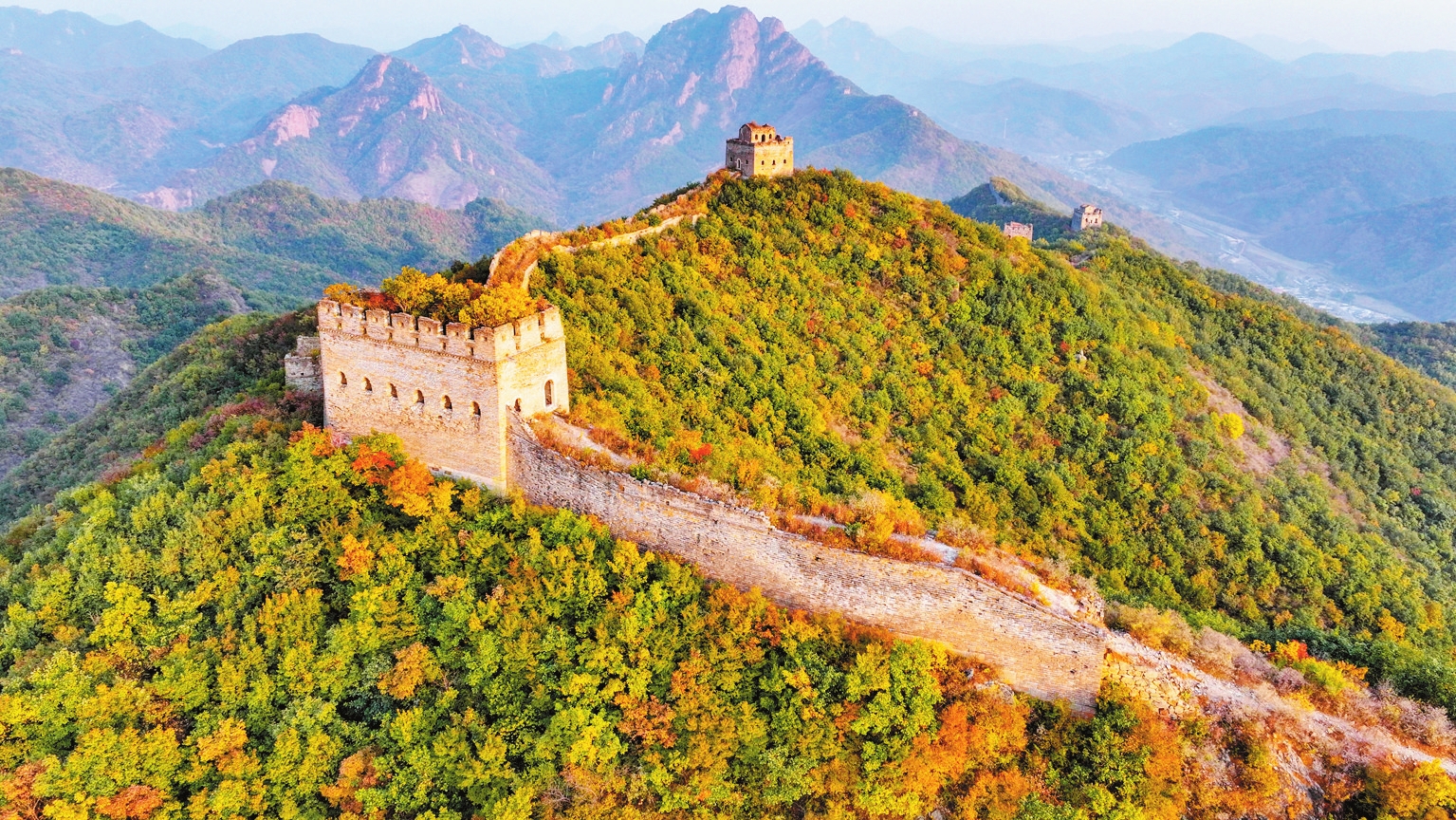 深秋时节,位于河北秦皇岛的董家口长城沿线层林尽染,呈现壮观景色。图为10月25日拍摄的董家口长城秋色。 新华社记者 陈晔华摄