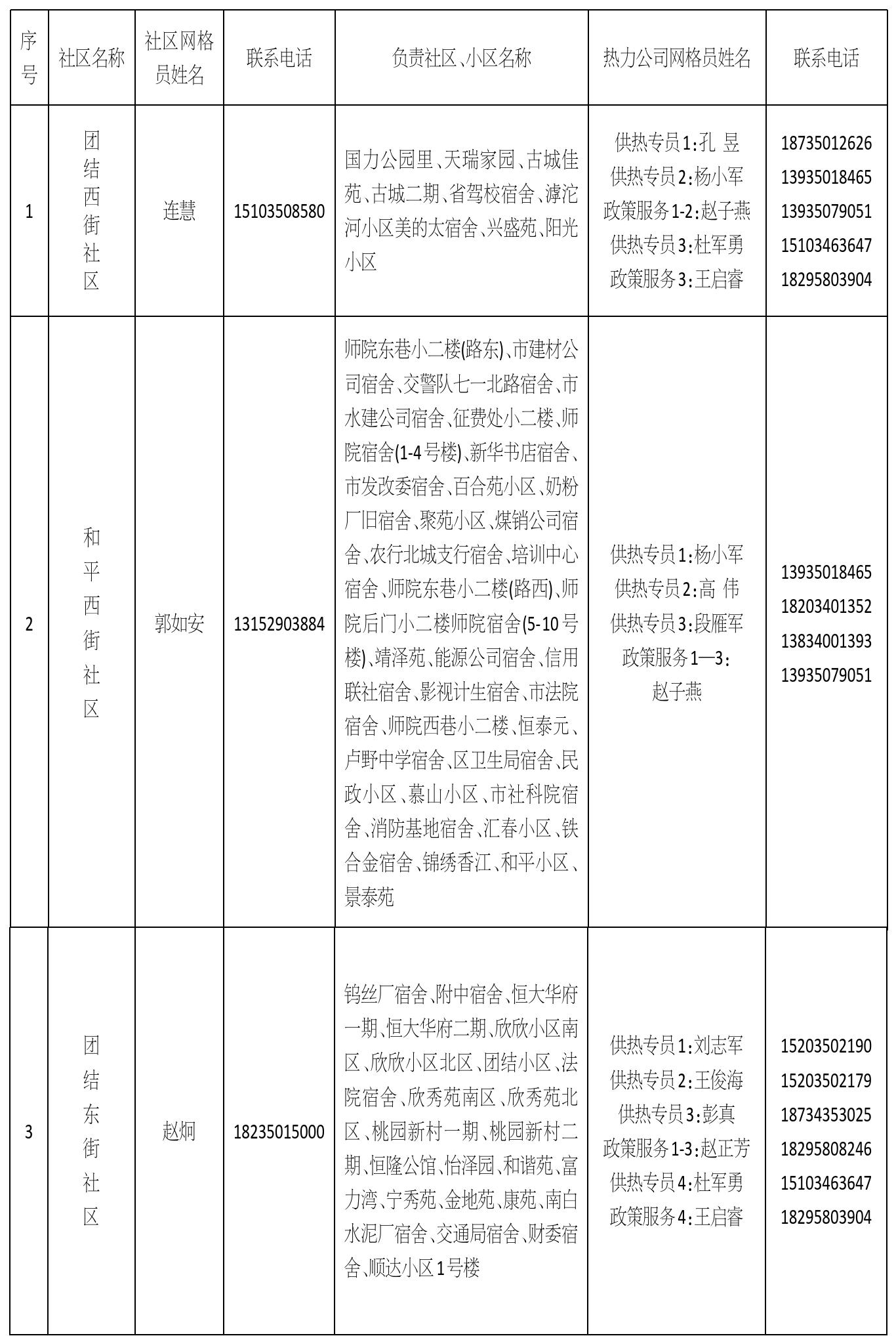 忻州城区供热三片区网格员信息公示