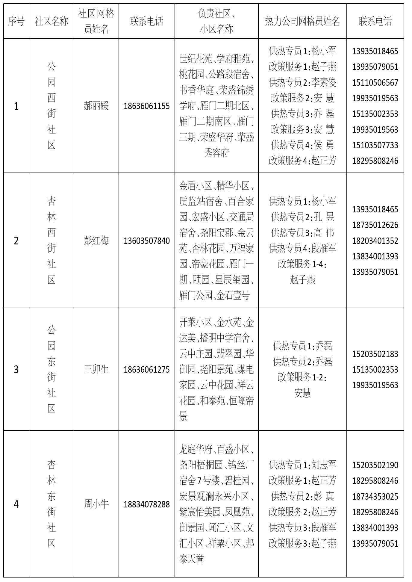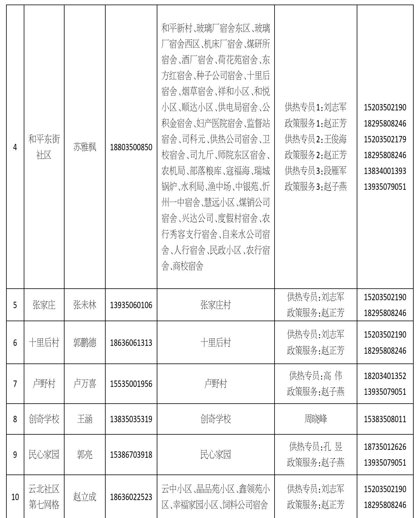 忻州城区供热四片区网格员信息公示