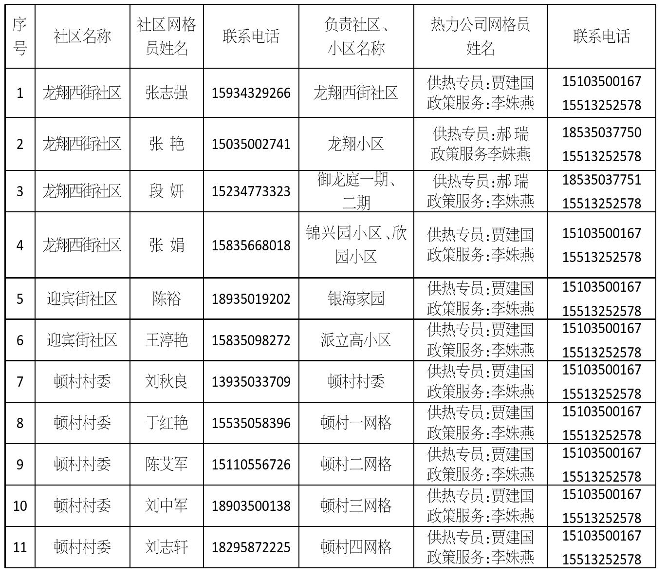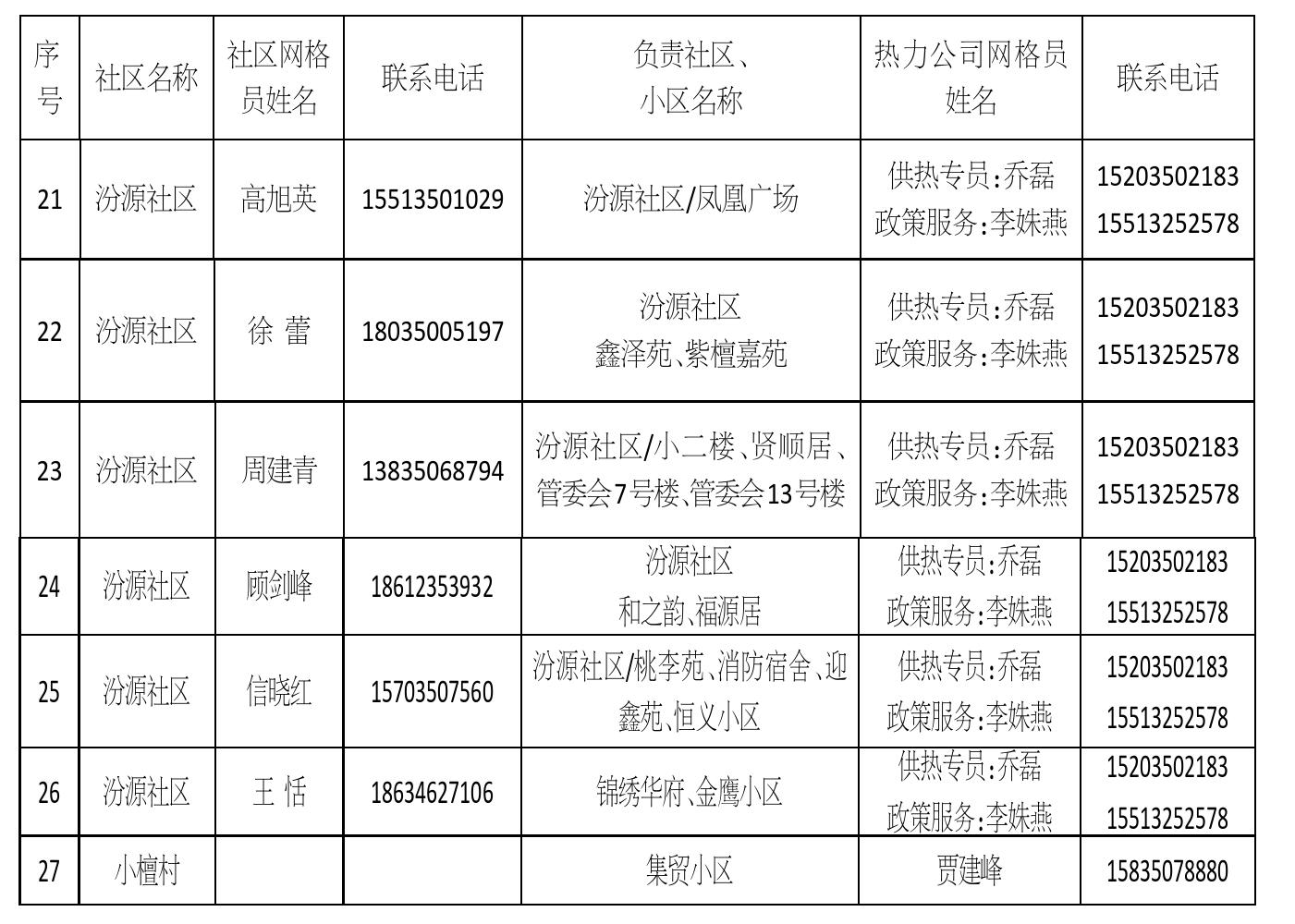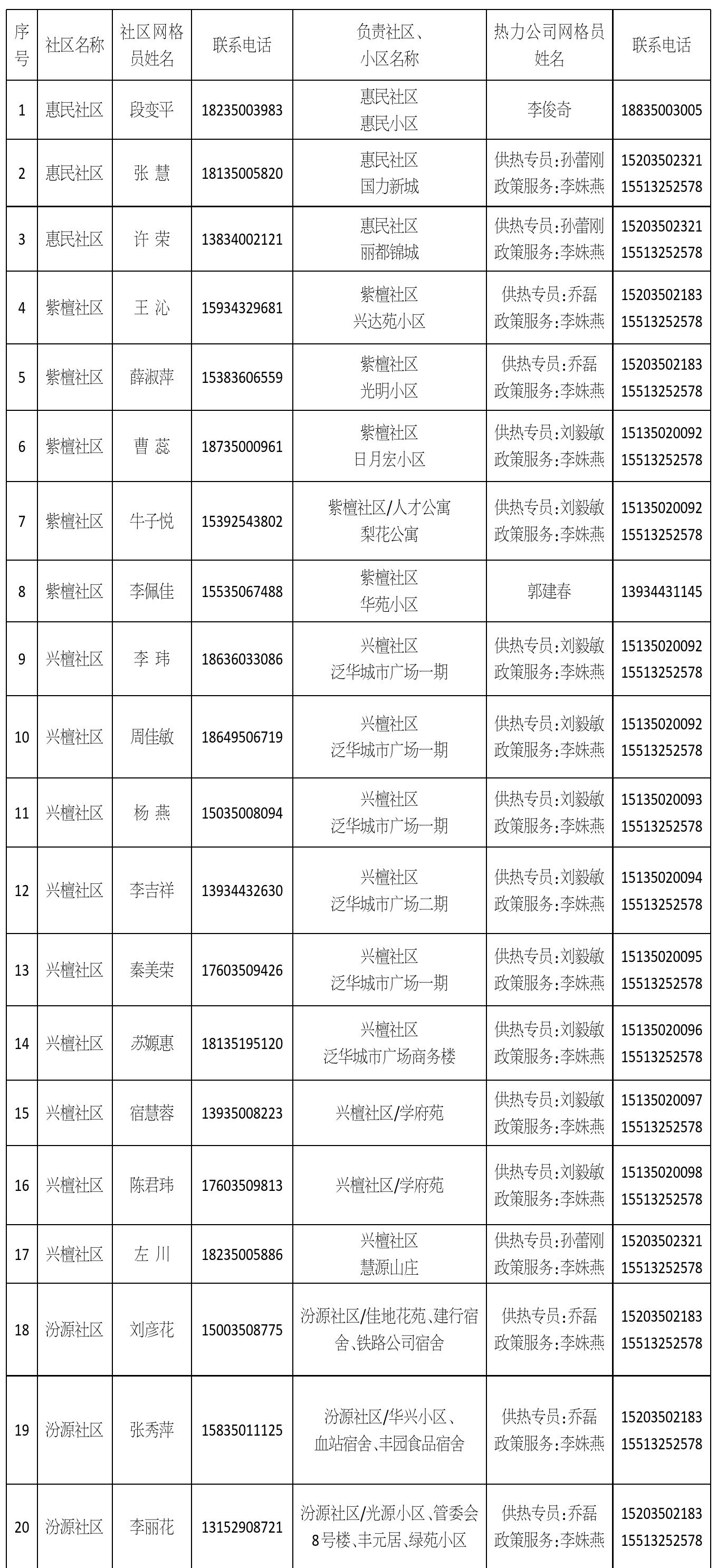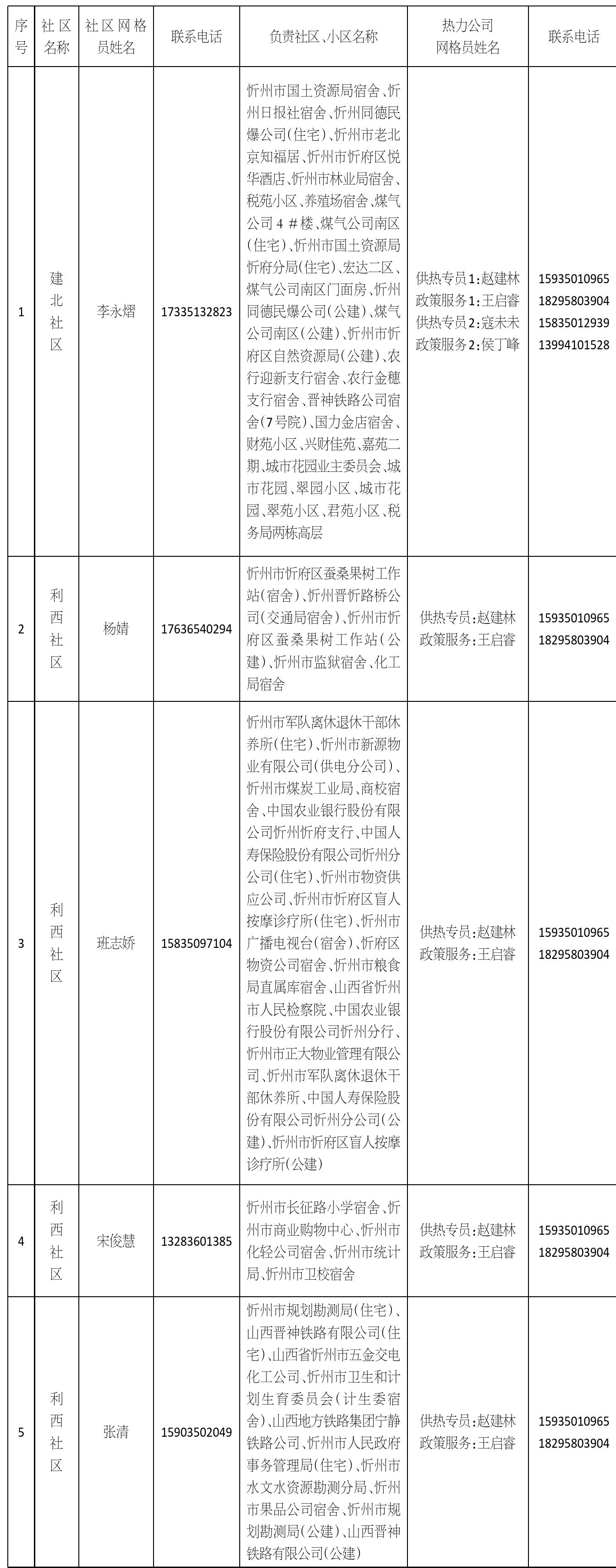 忻州城区供热片区网格员信息公示(一)