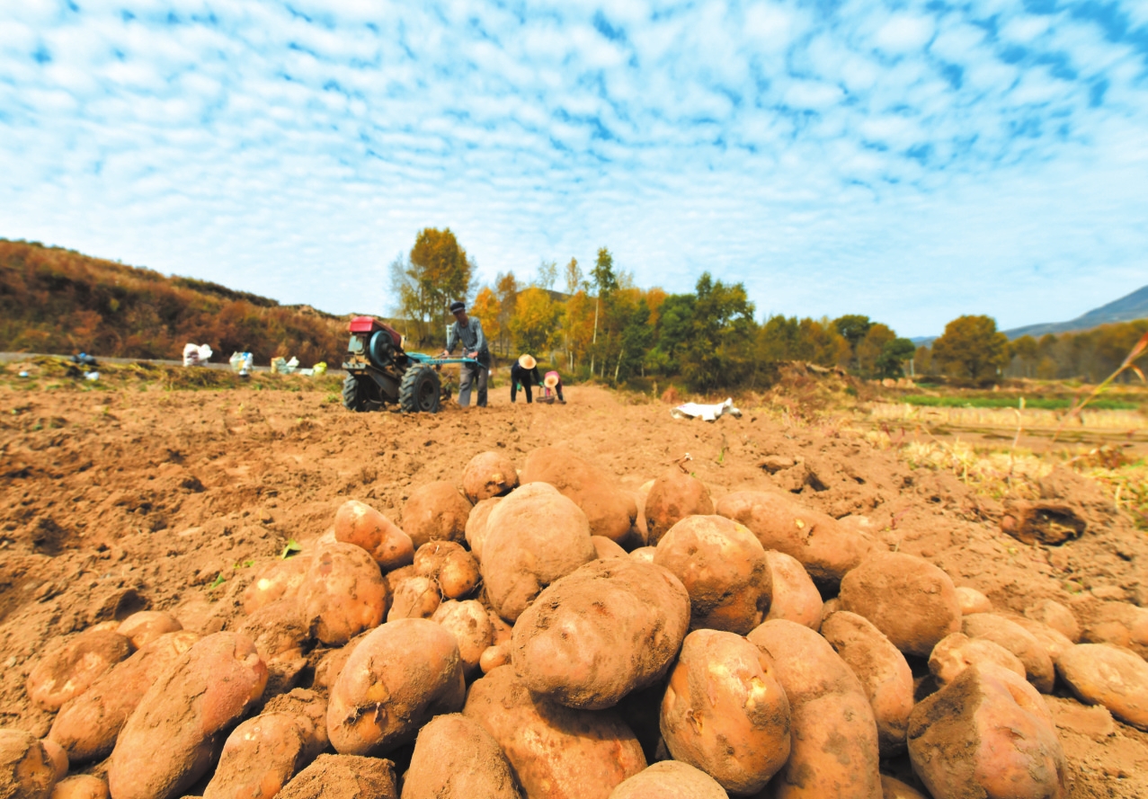 五台县耿镇镇灵境村收获土豆。卢俊华摄