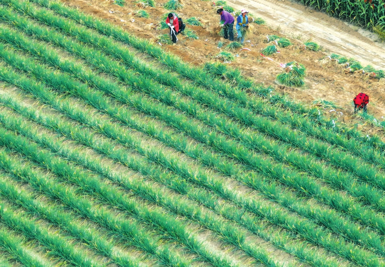 河曲县巡镇镇赤泥也村红葱喜获丰收。何帅摄