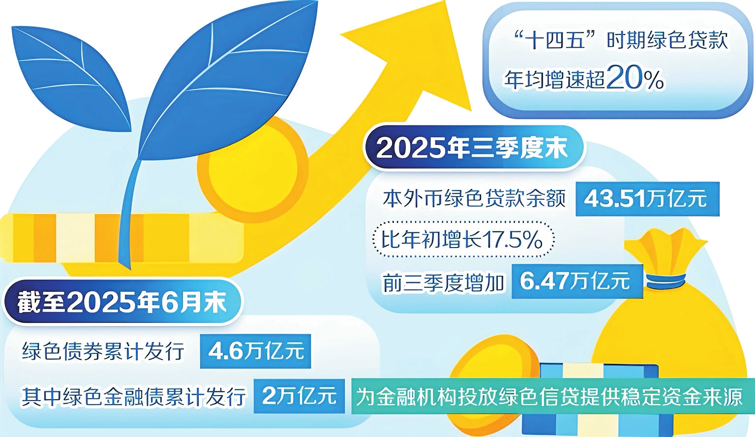 中国人民银行近期发布的2025年三季度金融机构贷款投向统计报告显示,我国绿色贷款快速增长。绿色金融是经济社会转型的有力支撑,也是美丽中国建设的重要保障。银行、证券等金融机构通过丰富绿色金融产品和服务,破解制约绿色信贷发展的难点,不断为绿色金融注入发展动力。
