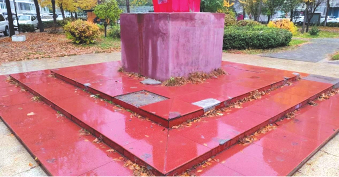 忻府区九原西街惠民小区16号楼北侧广场中心地砖缺失