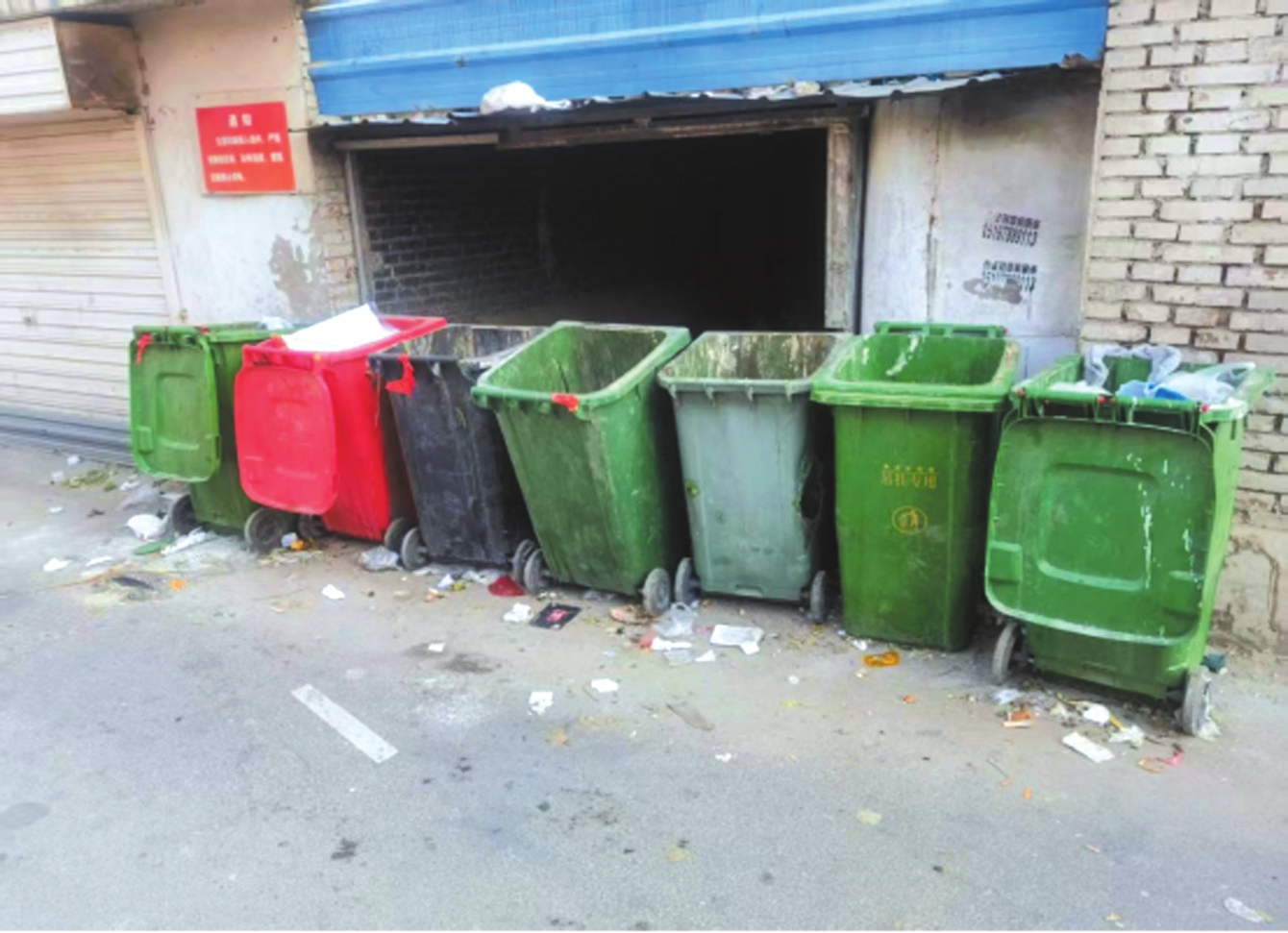 忻府区和平东街玻璃厂宿舍垃圾桶周围脏乱