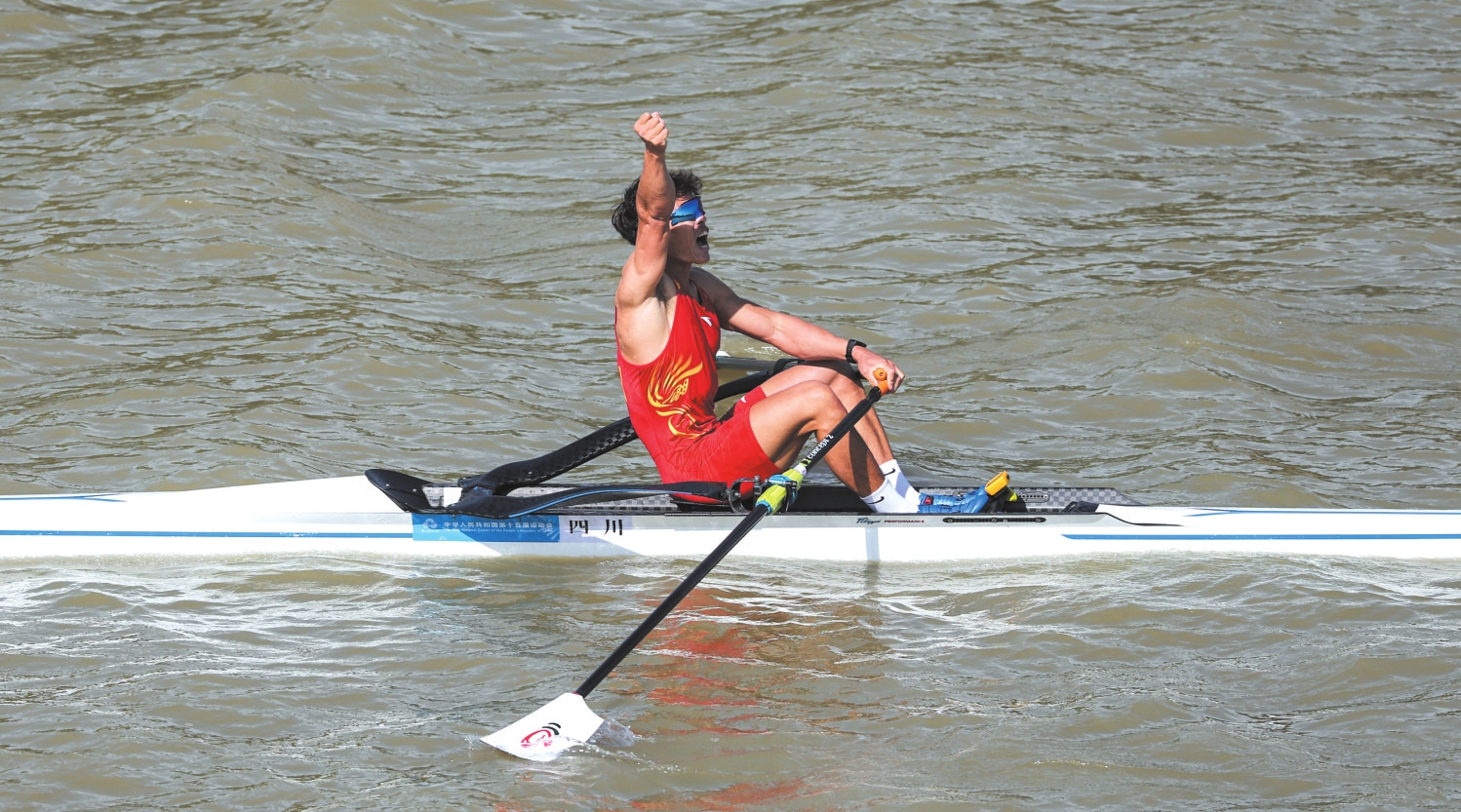 当日,第十五届全国运动会赛艇项目男子轻量级单人双桨决赛在广州举行。 新华社记者 潘昱龙 摄