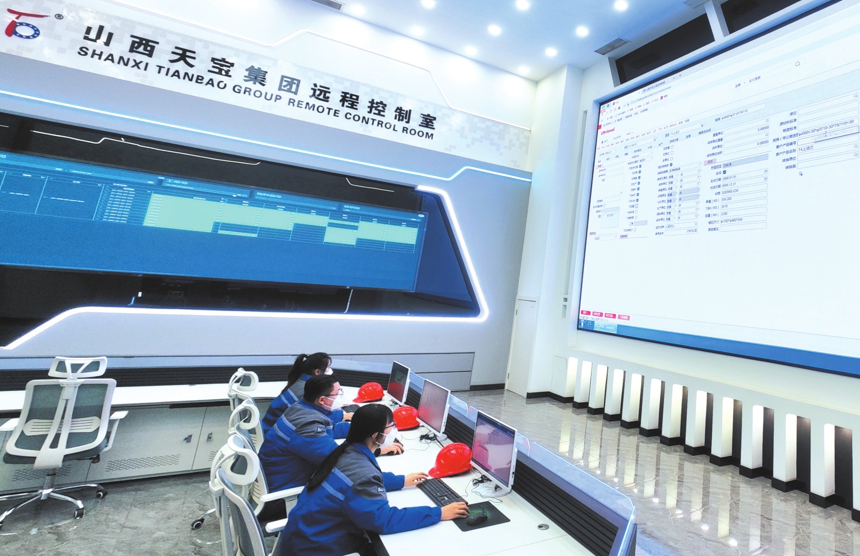 山西天宝集团工作人员正在查看订单生产进度,了解设备运行情况。本报记者 张存良摄
