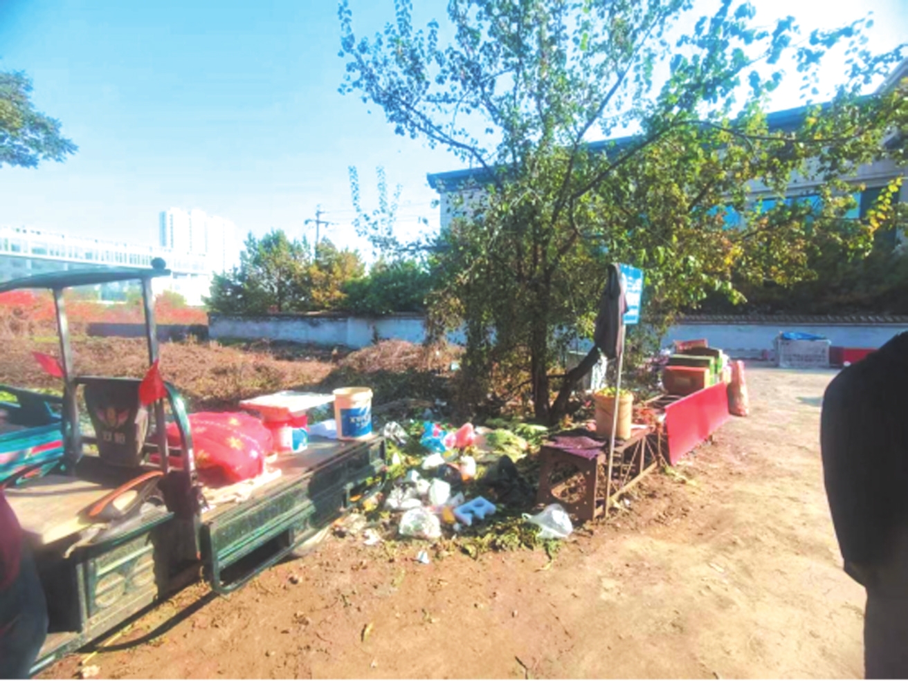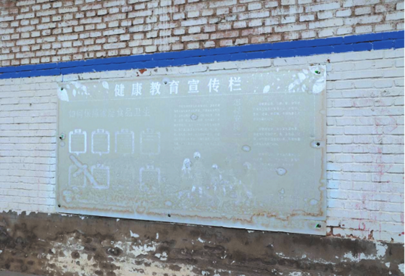忻府区大檀村北大街公益广告牌破损、褪色。