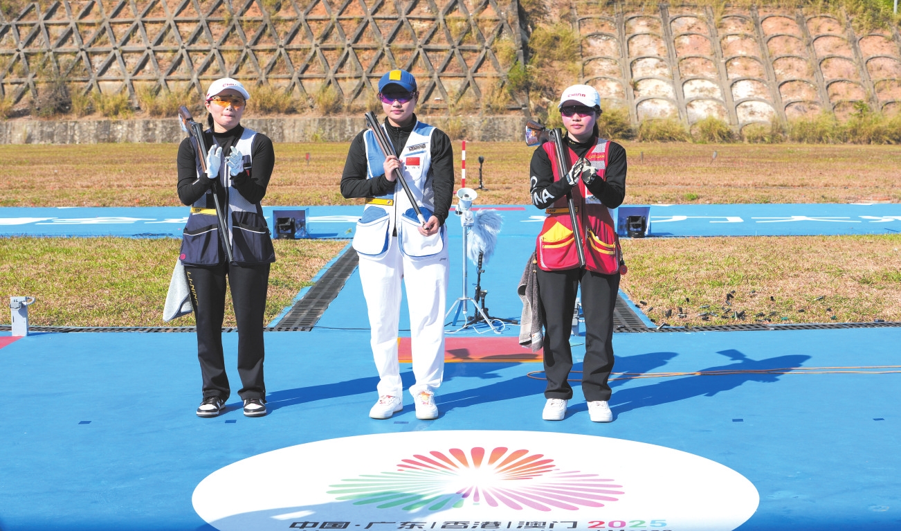 当日,第十五届全国运动会射击项目女子飞碟双向决赛在广州举行。 新华社记者 潘昱龙 摄