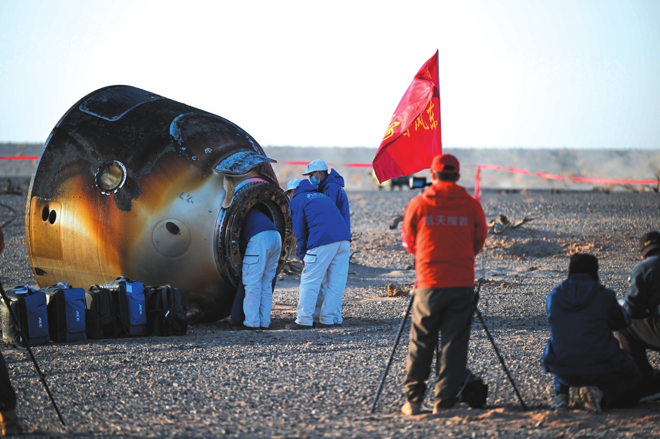 11月14日,载着神舟二十号航天员乘组的神舟二十一号载人飞船返回舱在东风着陆场成功着陆。 新华社记者 李志鹏 摄