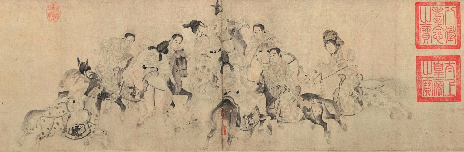 唐人对马球的喜爱始于唐太宗。《封氏闻见记》中载:“太宗常御安福门,谓侍臣曰:‘闻西蕃人好为打球,比亦令习,会一度观之。’”电视剧《长安十二时辰》中,一场马球戏还原了唐代马球运动的盛况。其实,在唐代二十多位皇帝中,至少有十几位是马球的忠实粉丝,唐玄宗、唐宣宗、唐僖宗等都是此中高手。唐代民谣说:“三郎(唐玄宗)少时衣不整,迷恋马球忘回宫。”宋人也认为沉迷打马球,是唐玄宗误国的一个原因。有一首广为流传的《题明王打球图》:“阊阖千门万户开,三郎沉醉打球回。九龄已老韩休死,无复明朝谏疏来。”唐僖宗球技更高,他曾对身边人说:“朕若应击球进士举,须为状元。”意思是,如果科举进士科考马球比赛,那么唐僖宗自信可以夺得马球状元。