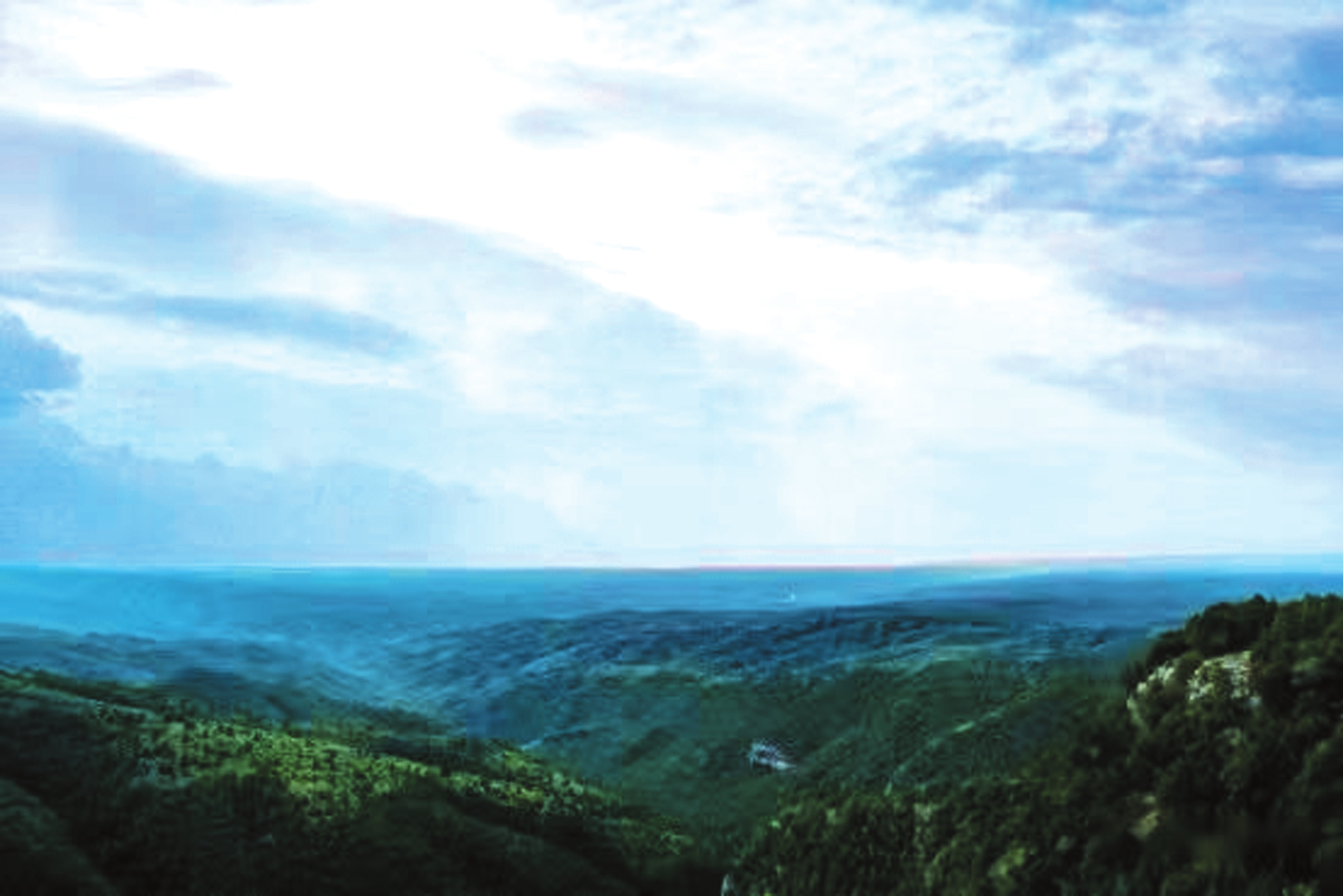 立于井油山巅,风光尽收眼底。远山如黛,似画师以淡墨随性挥洒;云雾缠绕,像仙人随手抛下的素纱。风自山脚徐徐而来,携着青草的鲜嫩与松针的醇厚,穿入肺腑。每一次呼吸都如饮甘露,令人心神一振,旅途的疲惫瞬间消散。八月的山涧,细流潺潺,其声悦耳。日光透过枝叶缝隙,碎成点点金箔,在山坳间跳跃,为满山浓绿注入了灵动气息。密林深处,时而传来野鸡、鹧鸪的清啼,划破山间静谧;时而有野兔、松鼠窜动的窸窣声,让整座山都透着勃勃生机。