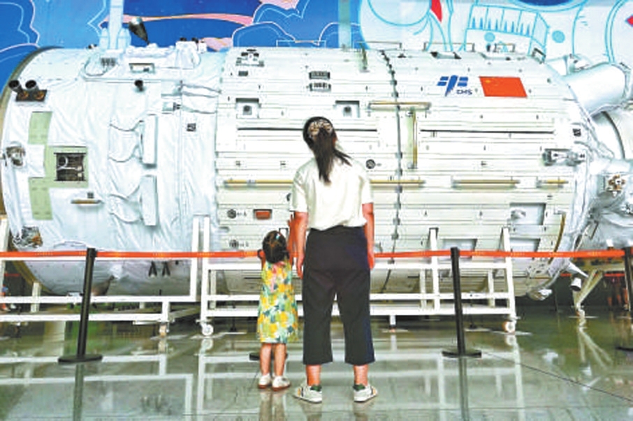 科技馆里,妈妈带着女儿仔细观赏,将梦想的种子种在孩子小小的心灵里。张齐摄