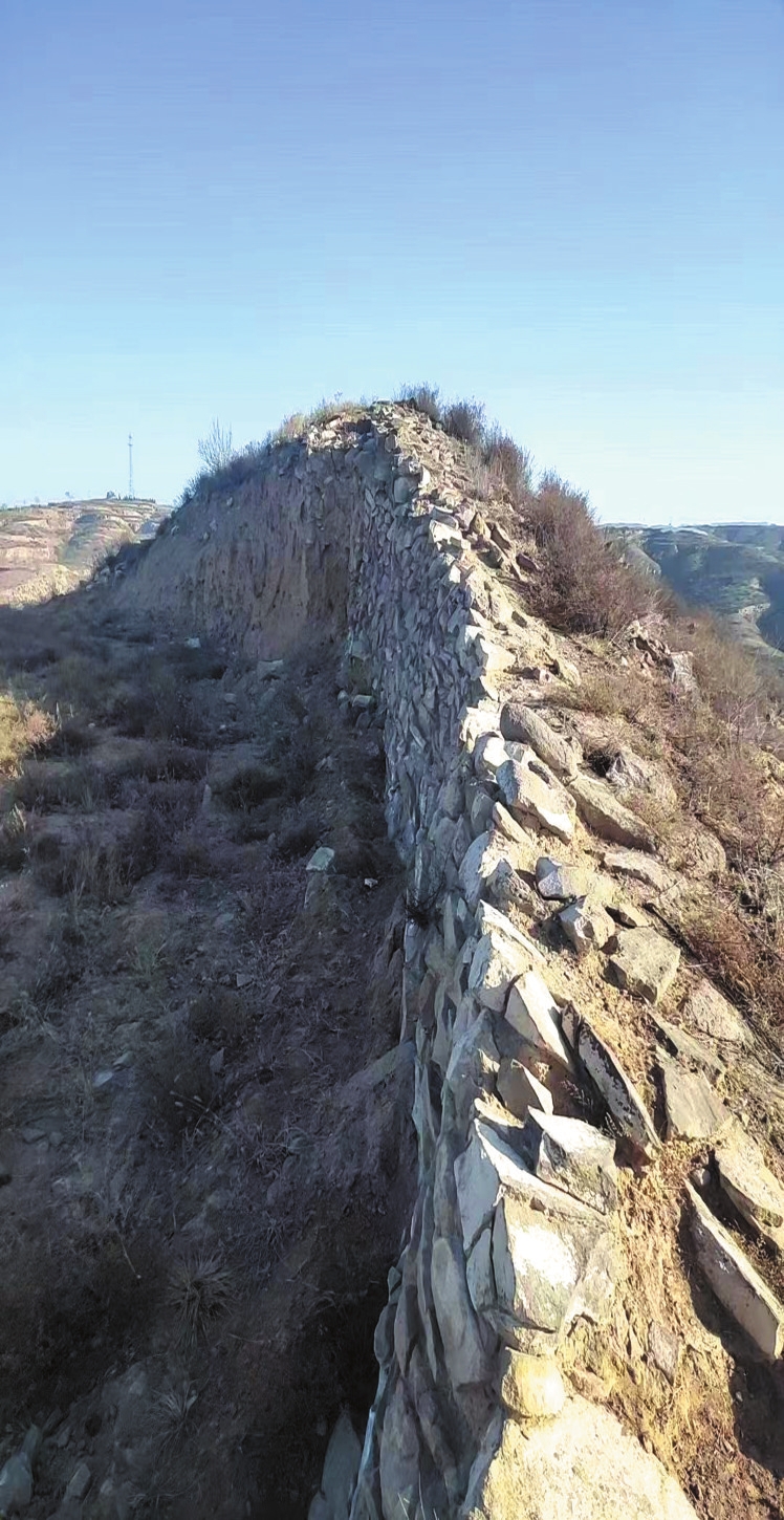 烽燧守望。烽火台又称“烽燧”“烽堠”“墩台”,是中国古代重要的军事防御设施,为防止敌人入侵而建。遇有敌情发生,则白天施烟,夜间点火,台台相连,传递消息。明代,保德境内共设烽火台21座,其中黄金山烽火台规模最大,兼具屯兵、瞭望敌情、传递情报等多重军事功能。清代为防止黄河西边捻军和回民起义军侵扰,沿河设墩台。林遮峪南,墩梁中部设烽火台,底部周长21米、残高7米。外围为条石砌筑的堡墙,33米见方,残高1.5米,四角建有用做瞭望的马面墩台,与黄金山、神山、冯家川各墩形成相互守望的军事防御体系。岁月流转,林遮峪烽火台见证了无数战火与和平的交替,其坚固的石基和斑驳的墙体,仿佛在诉说着那段波澜壮阔的历史。