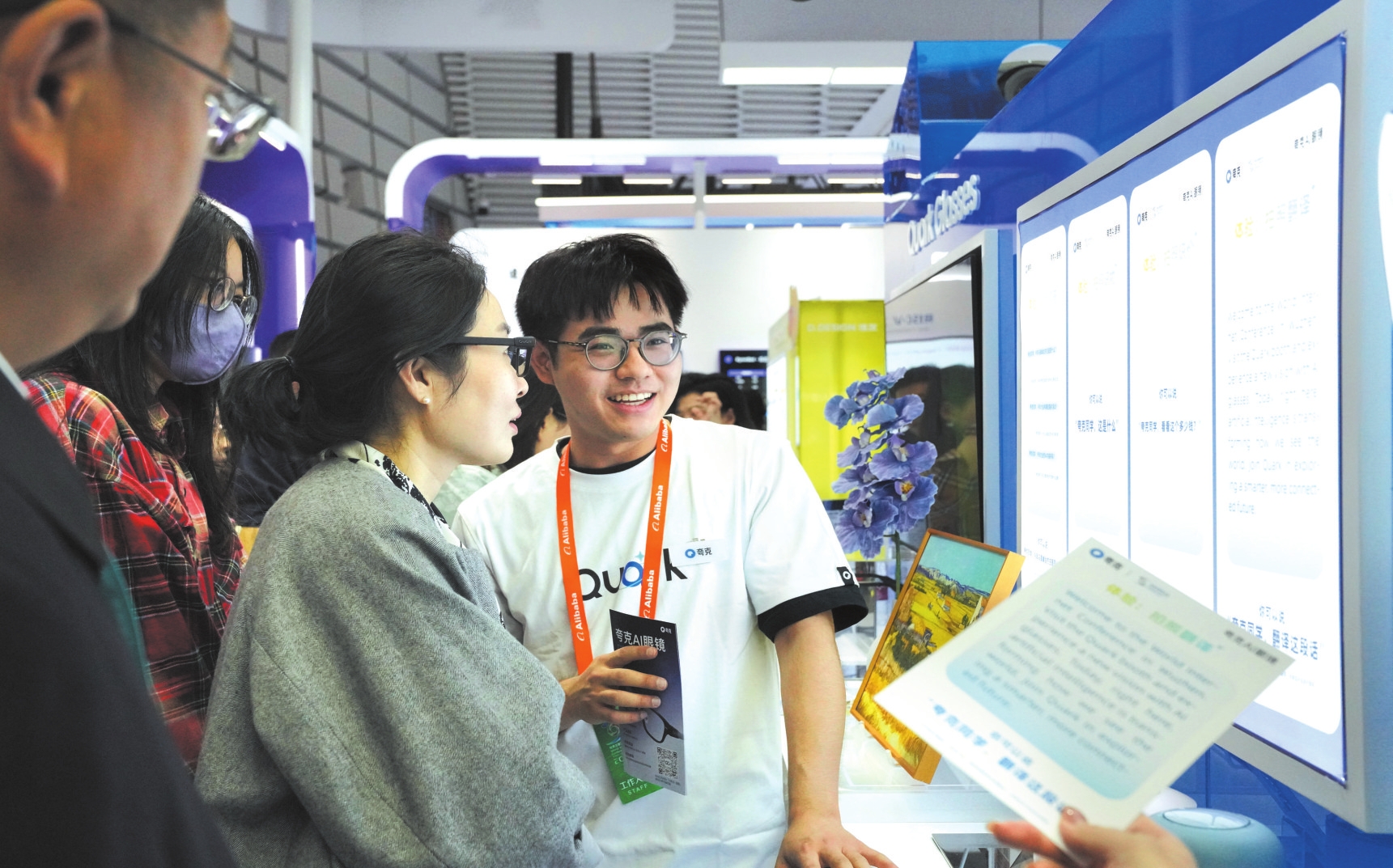 11月6日,观众在2025年世界互联网大会“互联网之光”博览会现场的AI眼镜展台试戴AI眼镜。