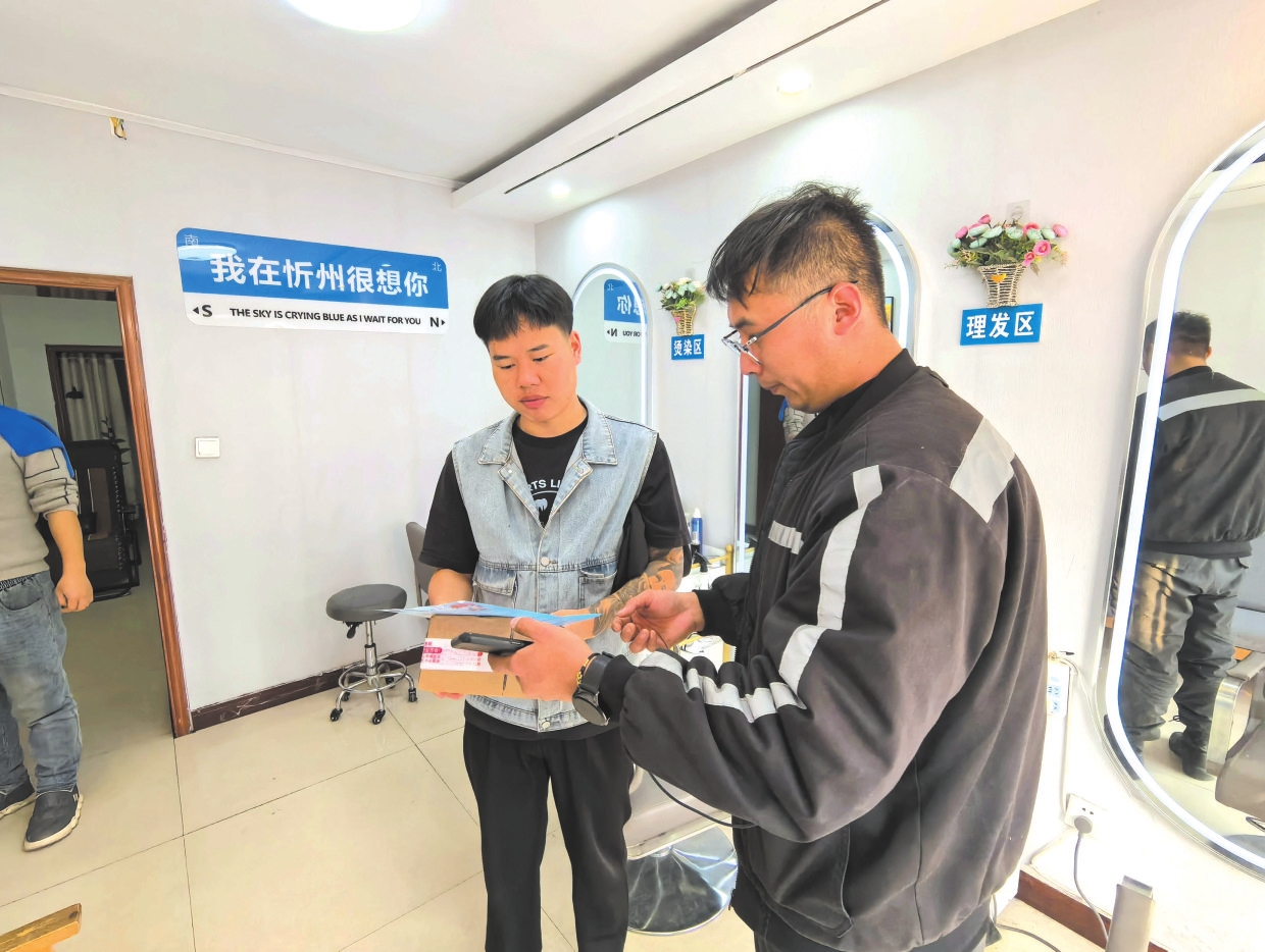 忻府区快递小哥参与“顺手捎带”志愿服务活动。