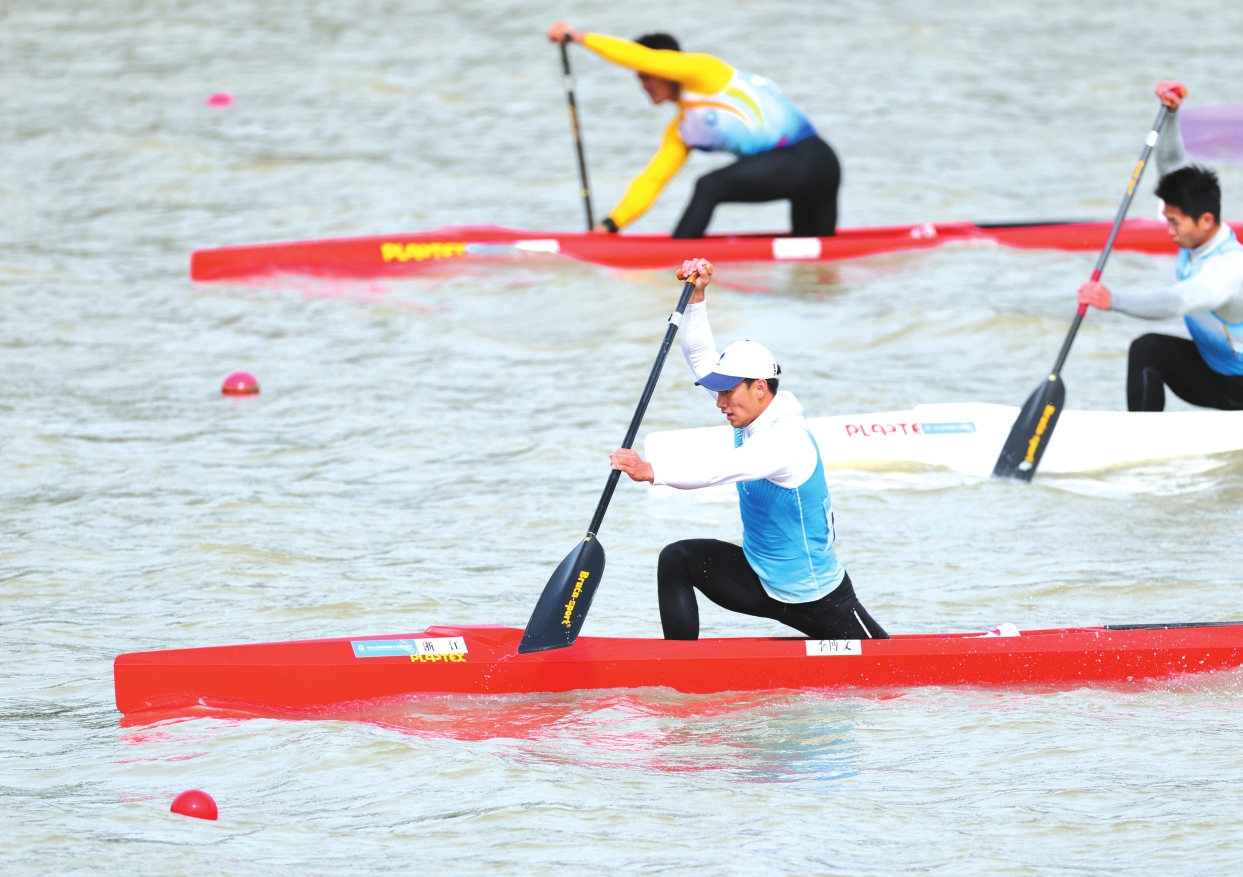 当日,第十五届全国运动会皮划艇静水项目男子1000米单人划艇决赛在广州举行。 新华社记者 杨世尧 摄
