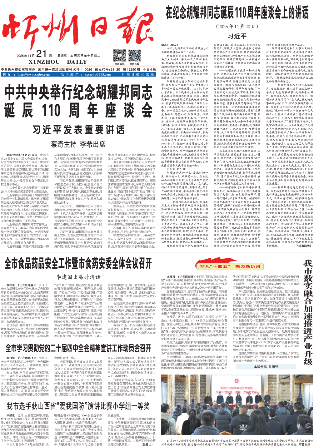 中共中央举行纪念胡耀邦同志诞辰110周年座谈会