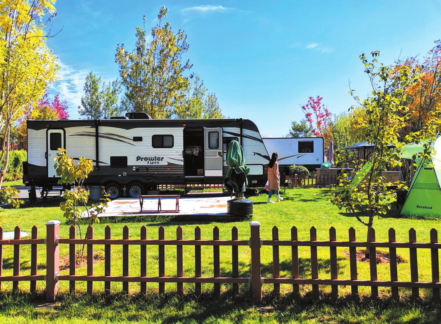 游客在忻州云中河景区房车营地享受美景。本报记者 宫清华摄