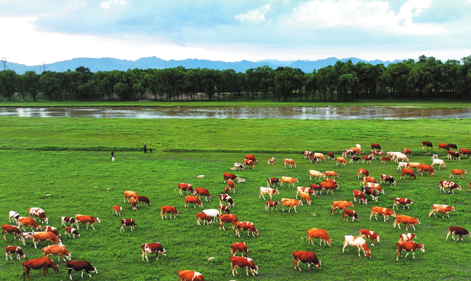 定襄县受禄乡在沿滹沱河冲击扇的盐碱荒滩地带规划出片区发展肉牛养殖业。张晋兰摄