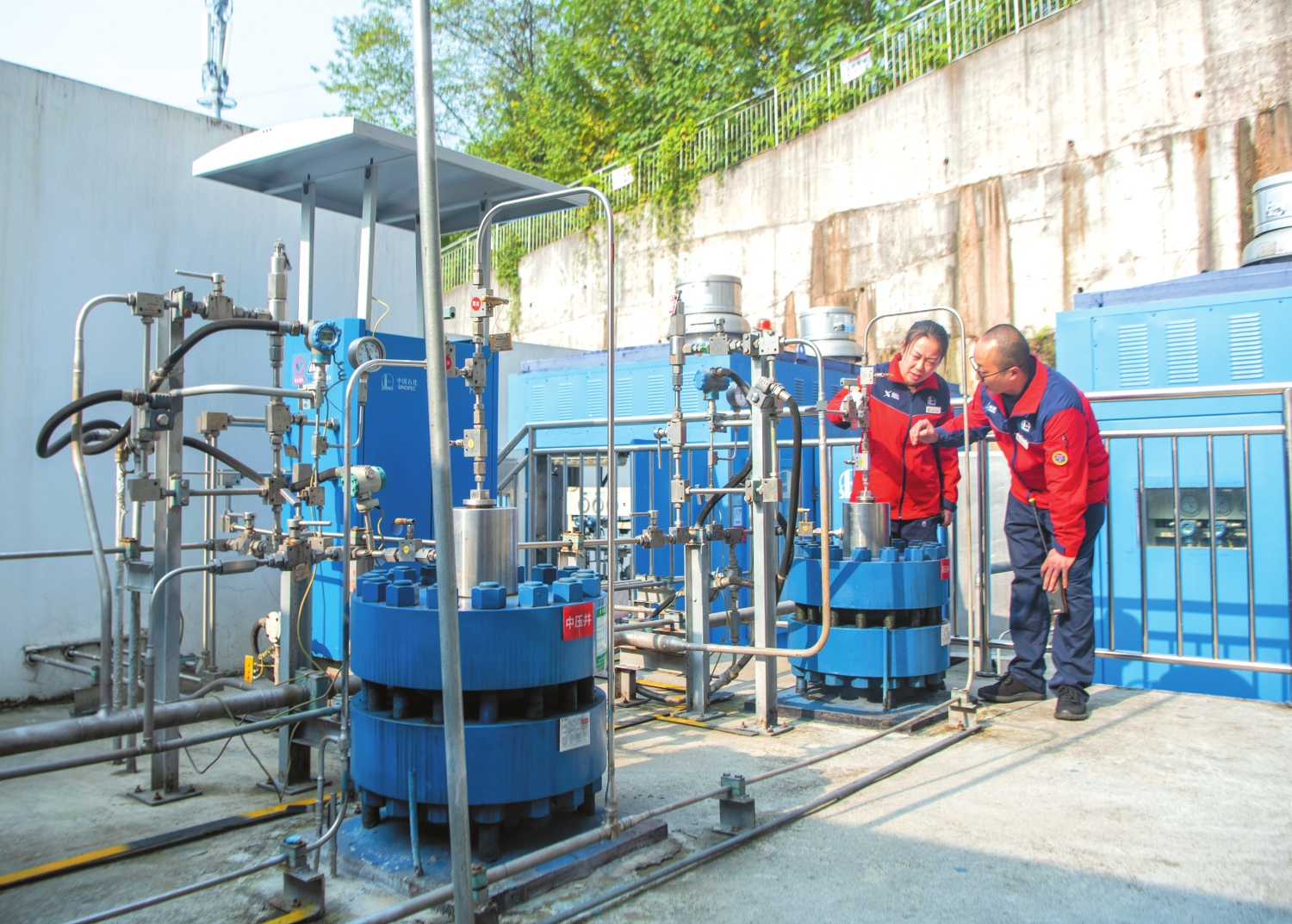 11月26日,工作人员在综合加能站储氢区进行安全检查。