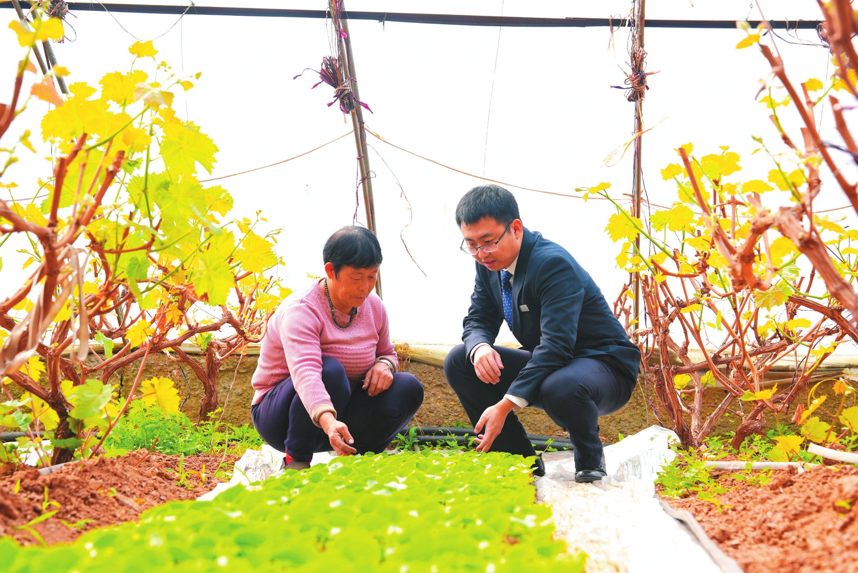 今年以来,忻州农商银行聚焦乡村特色种植产业,通过加大信贷投放、加强技术指导等方式,切实帮助大棚种植户解决生产经营中面临的资金与技术难题,为产业发展注入了金融动力。图为该行工作人员在大棚种植基地了解作物生长情况。