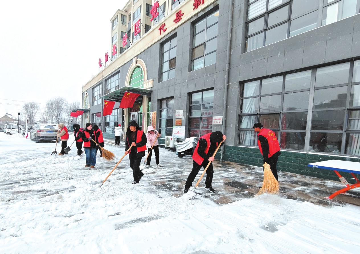 代县新时代文明实践中心工作人员在新北社区铲雪。 高俊伟 刘 睿摄图