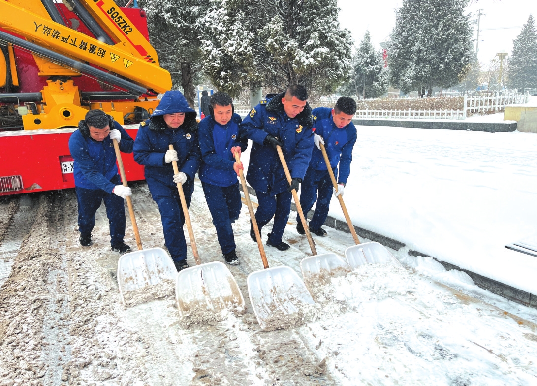 市能源局干部职工积极开展扫雪除冰作业。 张秉炬摄