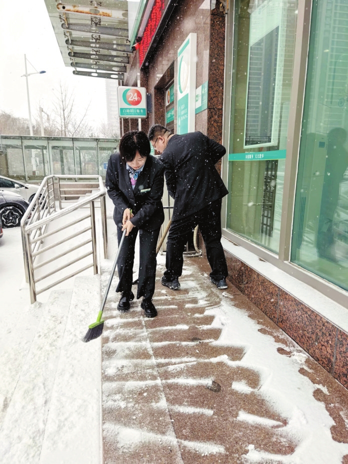 面对我市首场强降雪,农行忻州分行员工以雪为令,及时清扫网点及周边区域,确保服务通道畅通无阻,以实际行动传递了温暖的金融服务。