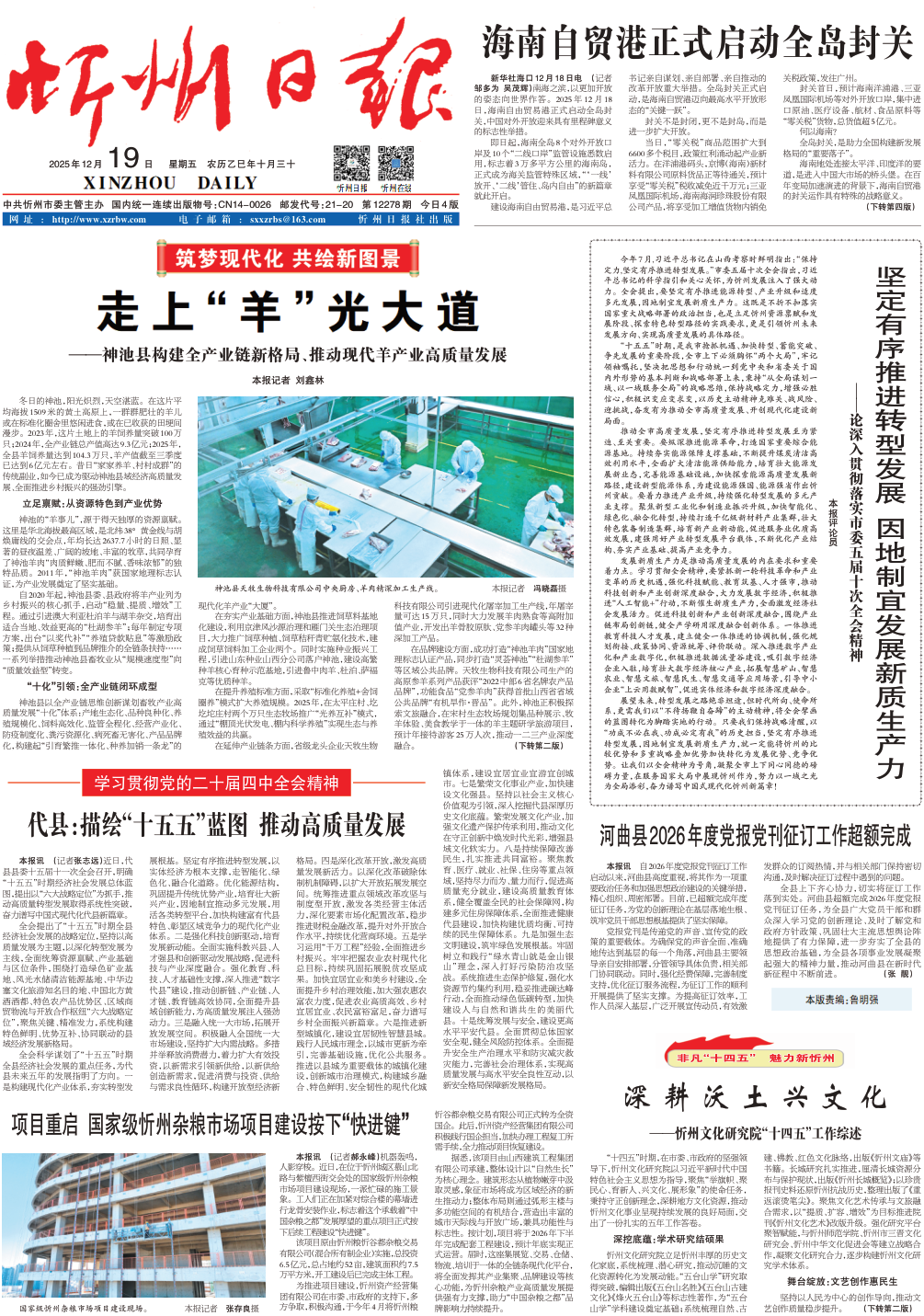 《 忻州日报 》( 2025年12月19日 第 01 版 )
