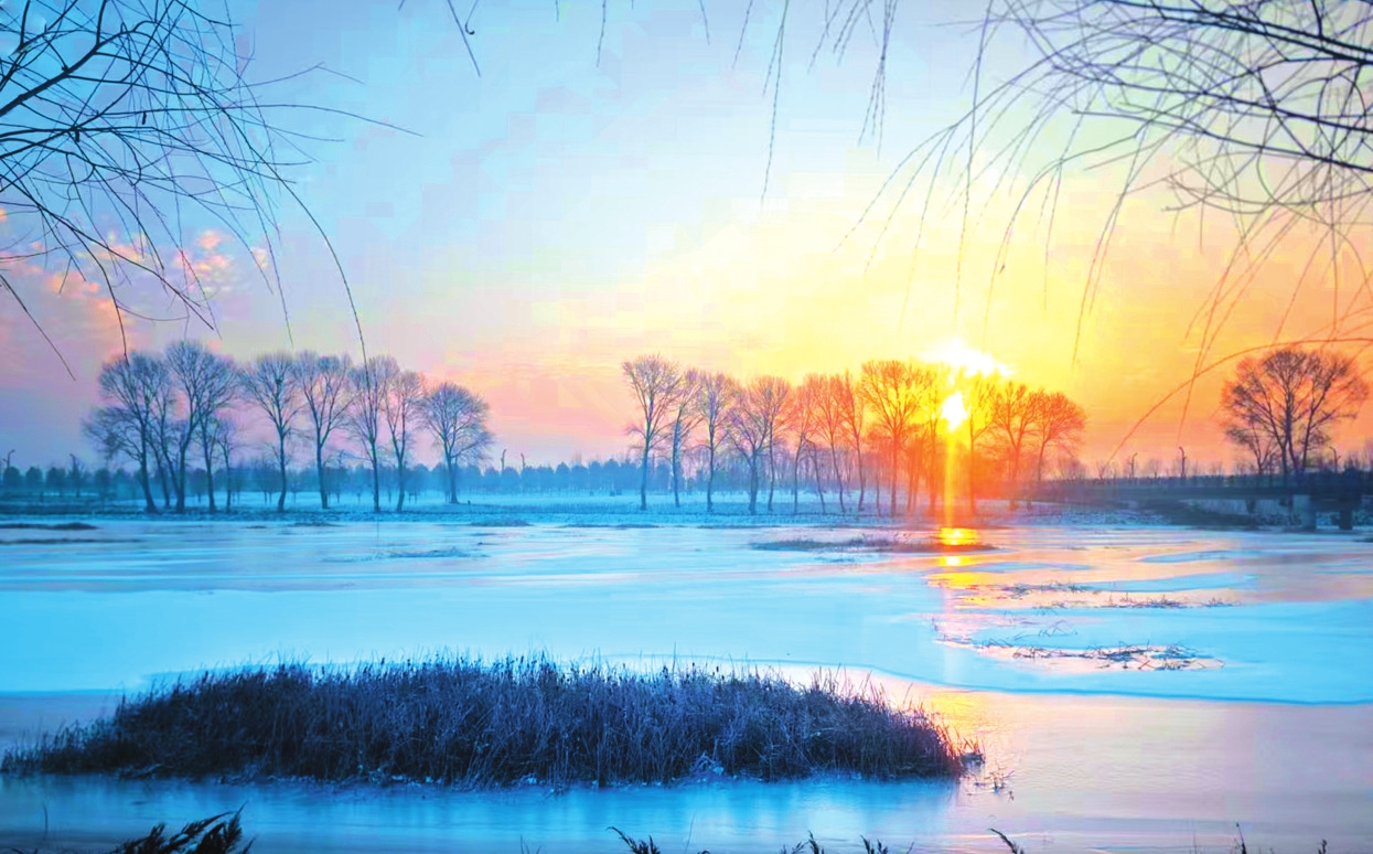 牧马河公园的雪,则是城市里的小确幸。柳树的枝条裹着雪,像银条般垂落。湖面结着薄冰,倒映着岸边的雪树,一派祥和景象。老人们在雪后的小径上散步,孩子们追跑打闹,堆起憨态可掬的雪人,偶尔传来的欢笑声,让整个公园都充满了生机。