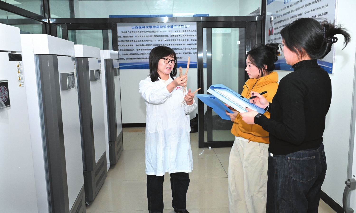 尽管窗外寒风凛冽、白雪皑皑,但五台现代农业产业示范区中药学博士服务站内却温暖如春。高科技实验室里,各类实验数据在屏幕上不停闪烁;标本室中,一株株中药材整齐陈列,琳琅满目;综合办公室内,键盘敲击声此起彼伏,工作人员正紧张有序地推进各项工作。