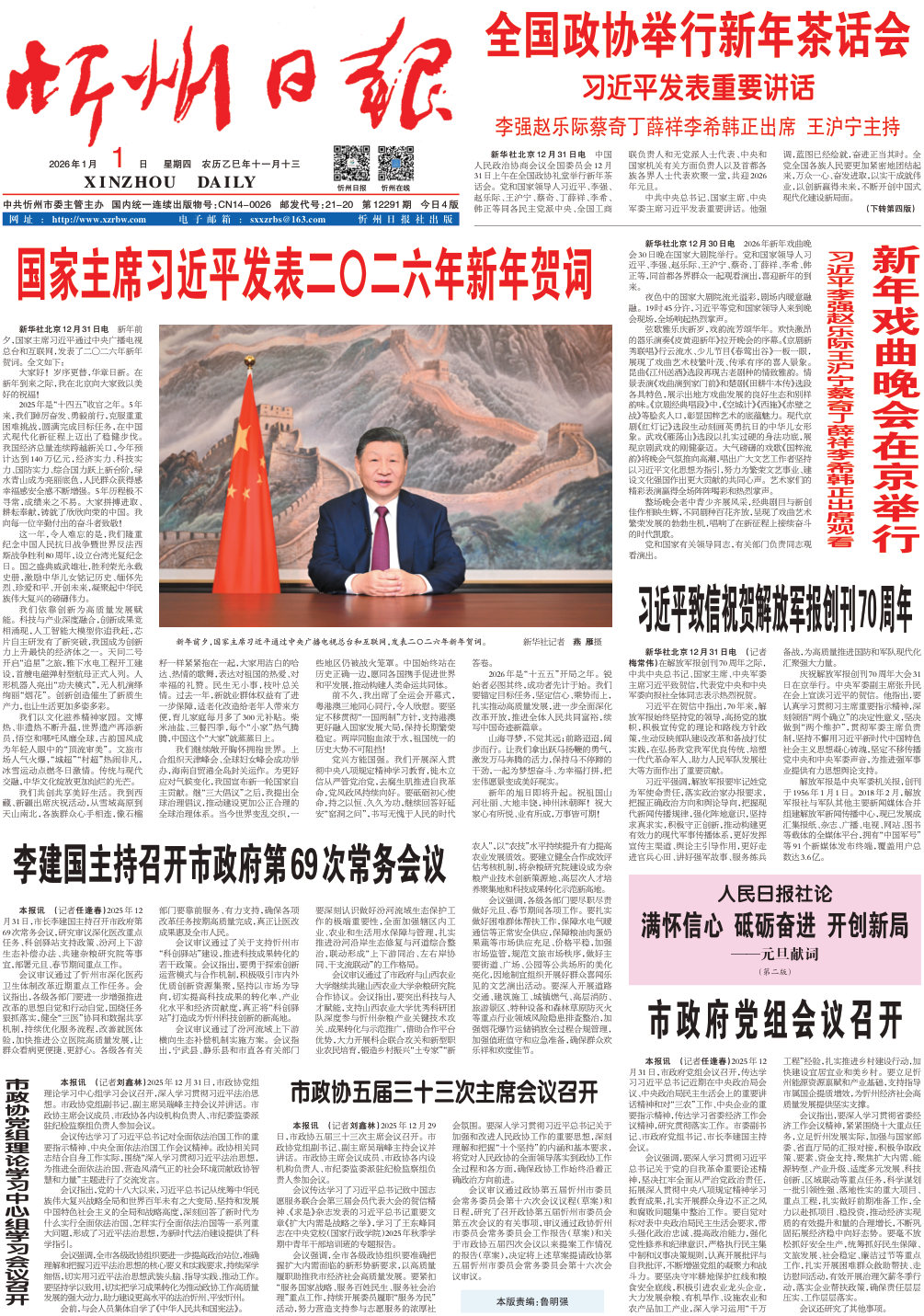国家主席习近平发表二〇二六年新年贺词