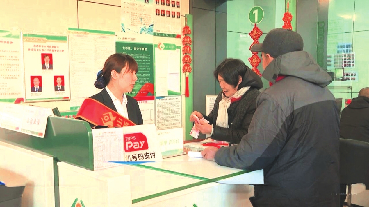 元旦前夕,原平农商银行大营支行工作人员深入田间地头和农家院落,面对面为村民办理社保业务、解答政策疑惑,将便捷的金融服务送到百姓家门口。本报通讯员摄