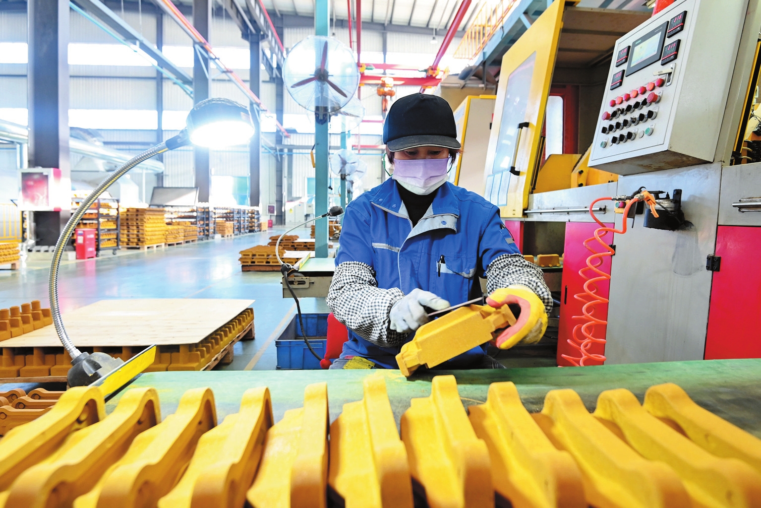 元旦过后,各地企业纷纷开足马力抓紧生产,赶制订单,力争新年“开门红”。图为1月4日,在山东省青州市邵庄镇一家车辆零部件制造企业,工人在车间内生产作业。新华社发王继林摄
