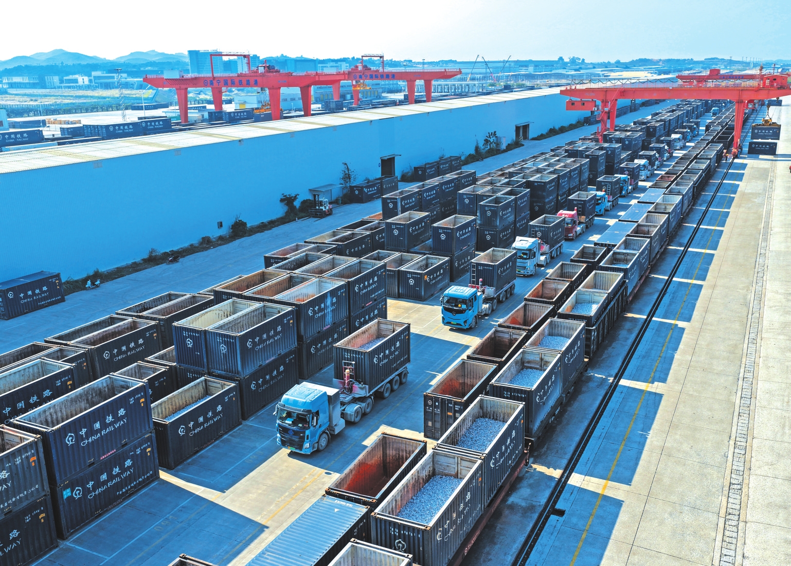 这是2026年1月8日拍摄的南宁国际铁路港。近日,记者从国铁南宁局获悉,2025年西部陆海新通道班列发运集装箱货物142.5万标箱,同比增长47.6%,首次实现年发运量突破百万标箱,再创历史新高。新华社记者 周华摄