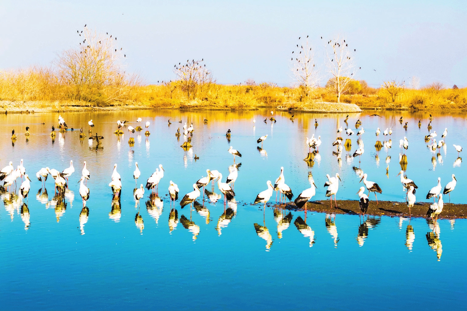 1月10日,鸟儿在江苏兴化里下河国家湿地公园内栖息、觅食。新华社发 周社根摄
