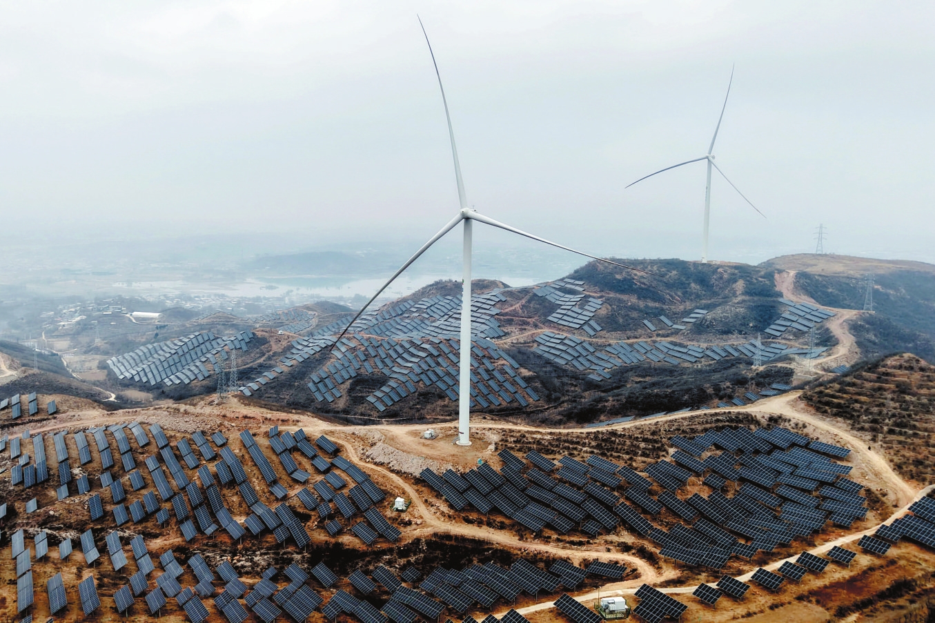 1月17日拍摄的河北省赞皇县院头镇曹家庄村附近的“风光互补”发电场。