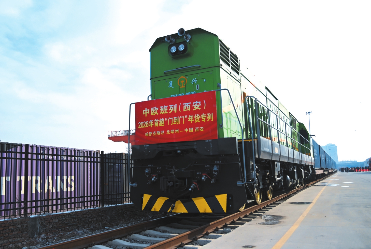 1月21日,2026年首趟中欧班列(西安)“门到门”年货专列满载着哈萨克斯坦成品粮油、蜂蜜等农产品驶抵西安。已连续开行三年的中欧班列(西安)“门到门”年货专列,实现从国外仓库发运到国内仓库收货的“门到门”运输,既有效提升货物运输效率、降低企业运输成本,又丰富春节市场供应。